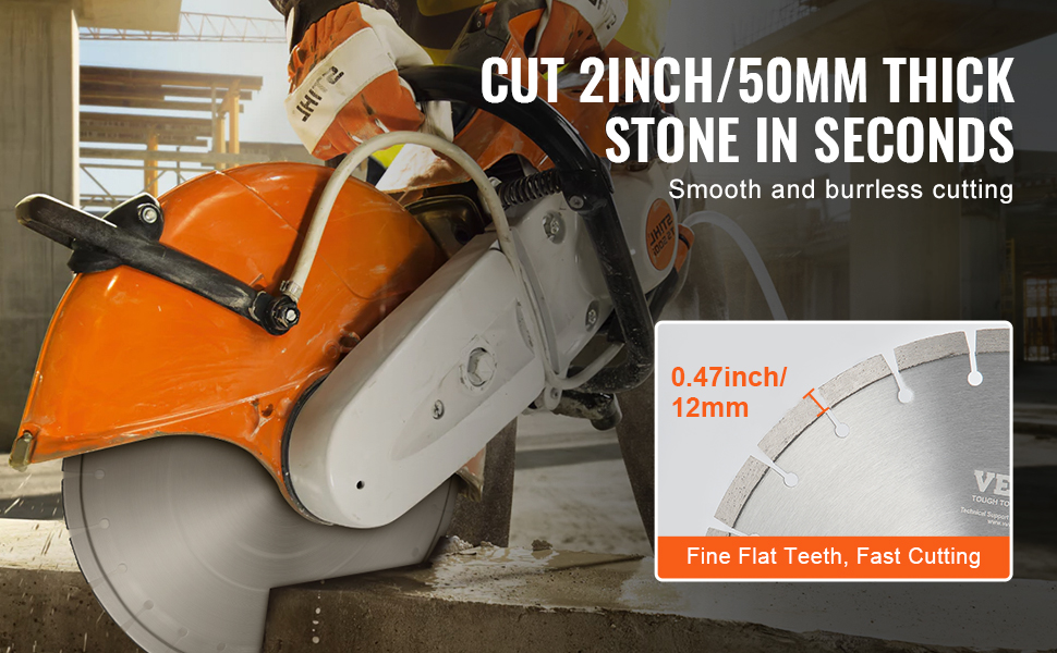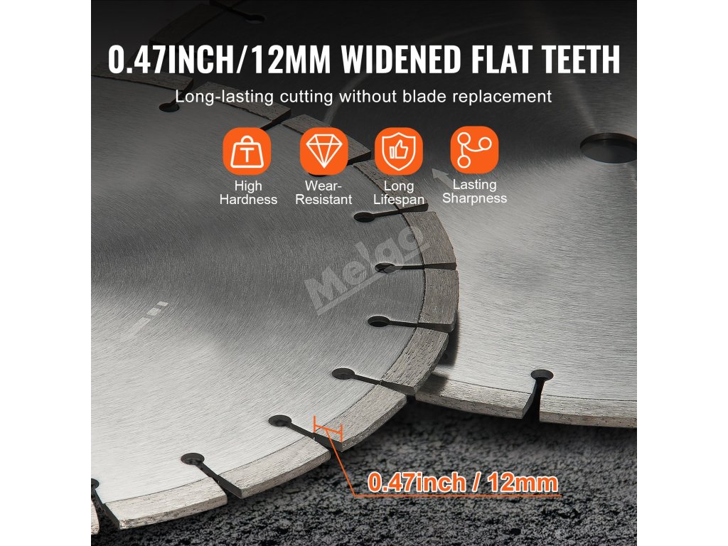 Ostrý design s plochými zuby v kombinaci s výškou diamantového segmentu 0,47 palce/12 mm zvyšuje rychlost řezání a zároveň zajišťuje hladké a čisté řezy. Ideální pro řezání dlaždic nebo broušení drážek, což umožňuje efektivní a rychlé dokončení.