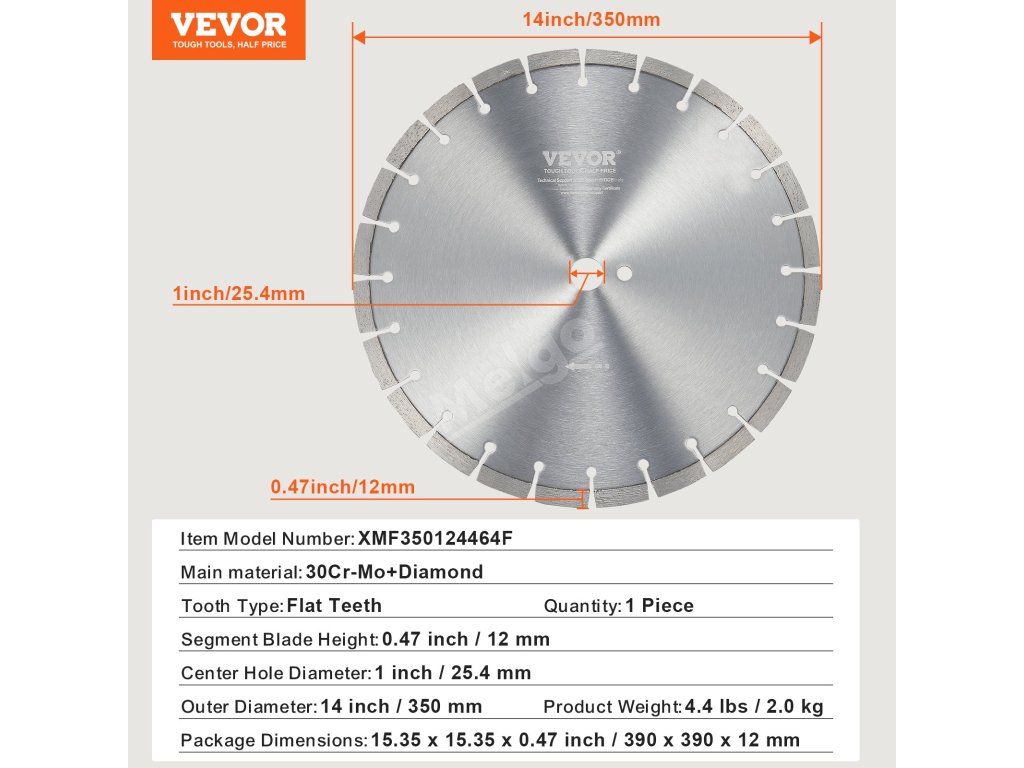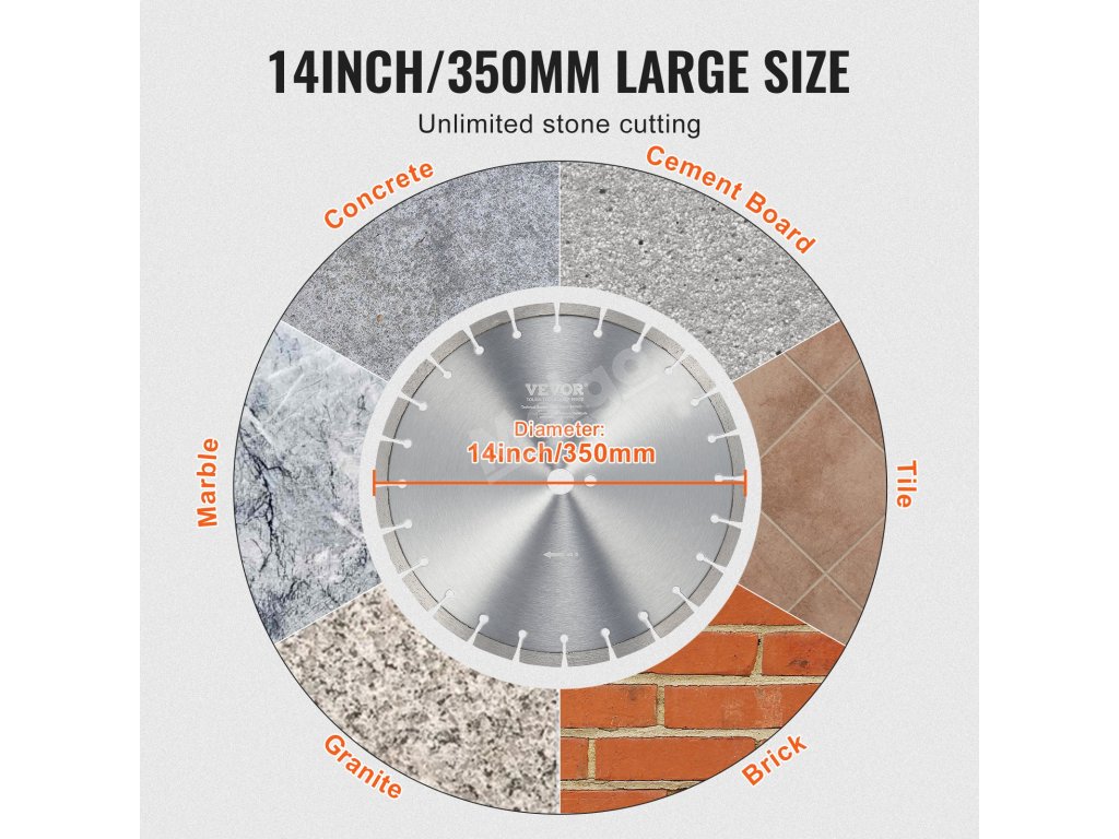 Diamantový kotouč 14 inch/350 mm 0.47 inch/12 mm otvor 1 inch/25.4 mm