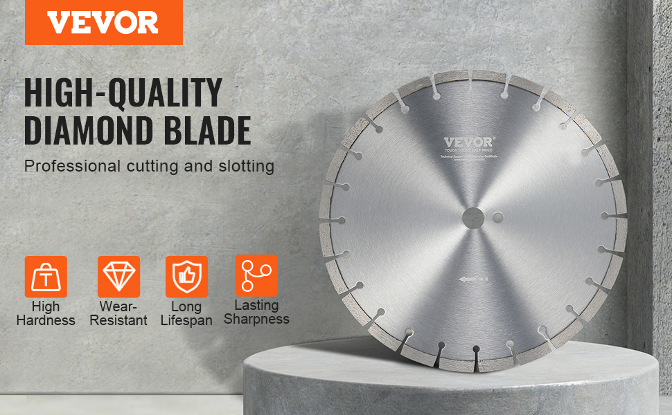 Náš pilový kotouč na beton používá základ ze slitiny 30Cr-Mo a diamantové segmenty s vysokou hustotou, které zajišťují vysokou tvrdost, odolnost proti opotřebení a delší ostrost pro profesionální řezání.