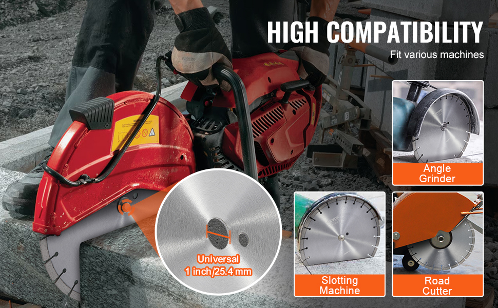 Náš diamantový kotouč na beton má univerzální středový otvor o průměru 1 palec/25,4 mm, který je kompatibilní s většinou zařízení na trhu. Snadno se přizpůsobí, ať už jde o drážkování cest na stavbách nebo řezání dlaždic při každodenních opravách.