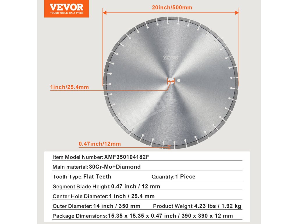 Diamantový kotouč 14inch/350mm na beton zuby 10mm Ø25.4mm mokré/suché