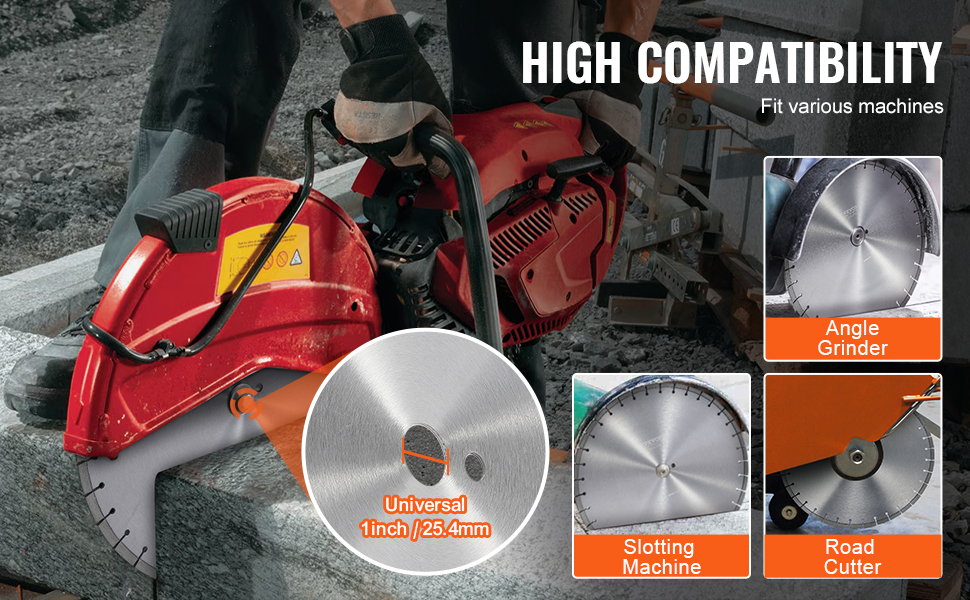 Náš diamantový kotouč na beton má univerzální středový otvor o průměru 1 palec/25,4 mm, který je kompatibilní s většinou zařízení na trhu. Snadno se přizpůsobí, ať už jde o drážkování cest na stavbách nebo řezání dlaždic při každodenních opravách.