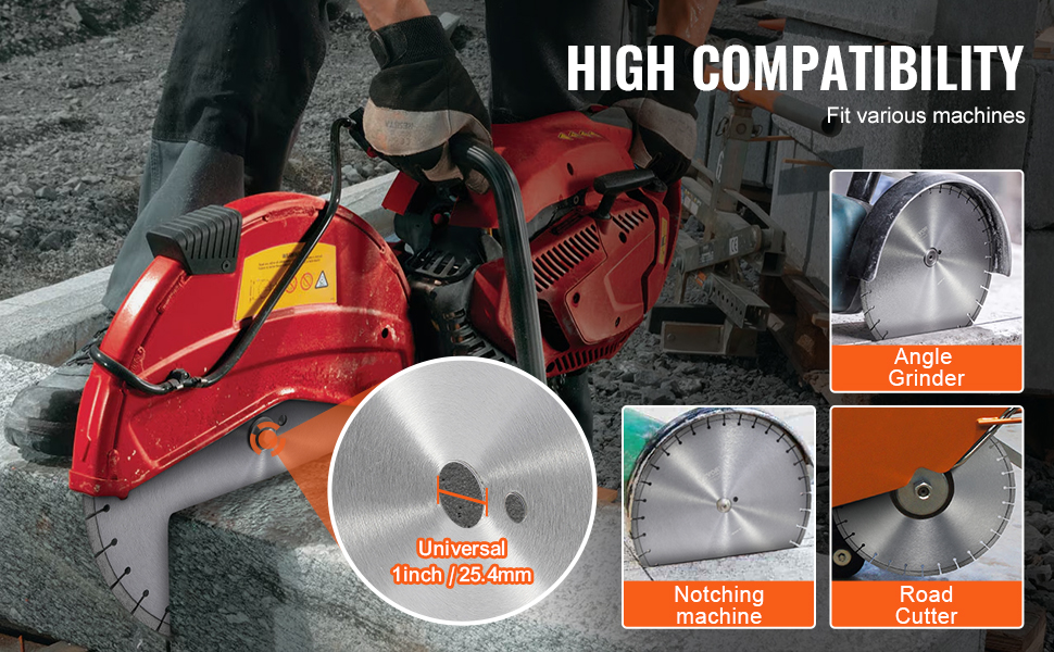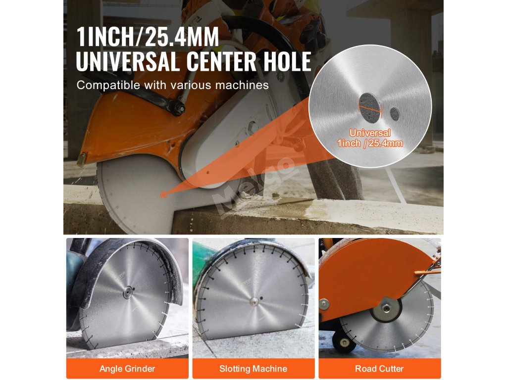 Náš diamantový kotouč na beton má univerzální středový otvor o průměru 1 palec/25,4 mm, který je kompatibilní s většinou zařízení na trhu. Snadno se přizpůsobí, ať už jde o drážkování cest na stavbách nebo řezání dlaždic při každodenních opravách.