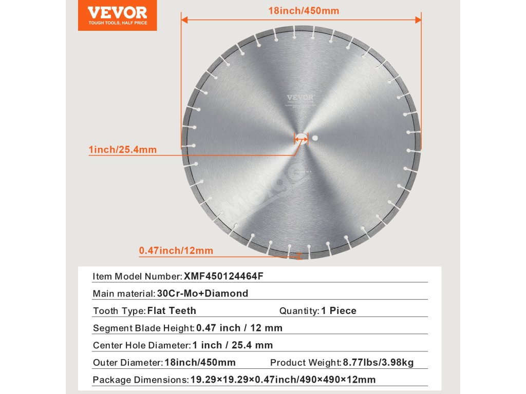 Diamantový kotouč na beton 18inch/450mm, 12mm segment, 25.4mm otvor