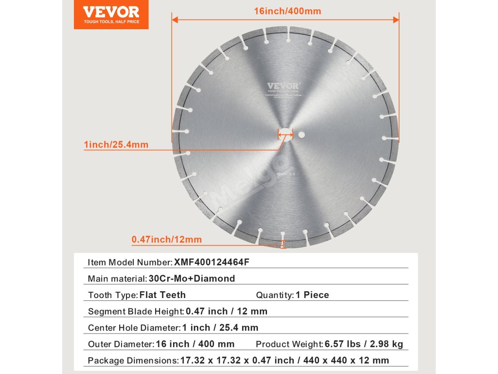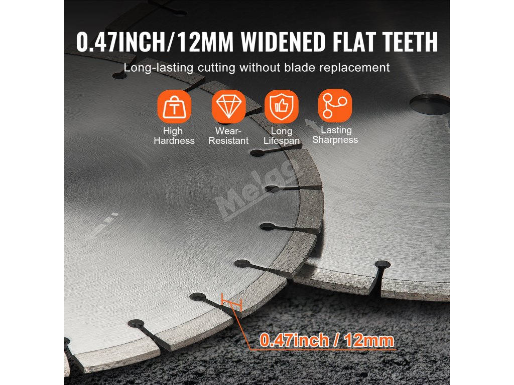Ostrý design s plochými zuby v kombinaci s výškou diamantového segmentu 0,47 palce/12 mm zvyšuje rychlost řezání a zároveň zajišťuje hladké a čisté řezy. Ideální pro řezání dlaždic nebo broušení drážek, což umožňuje efektivní a rychlé dokončení.
