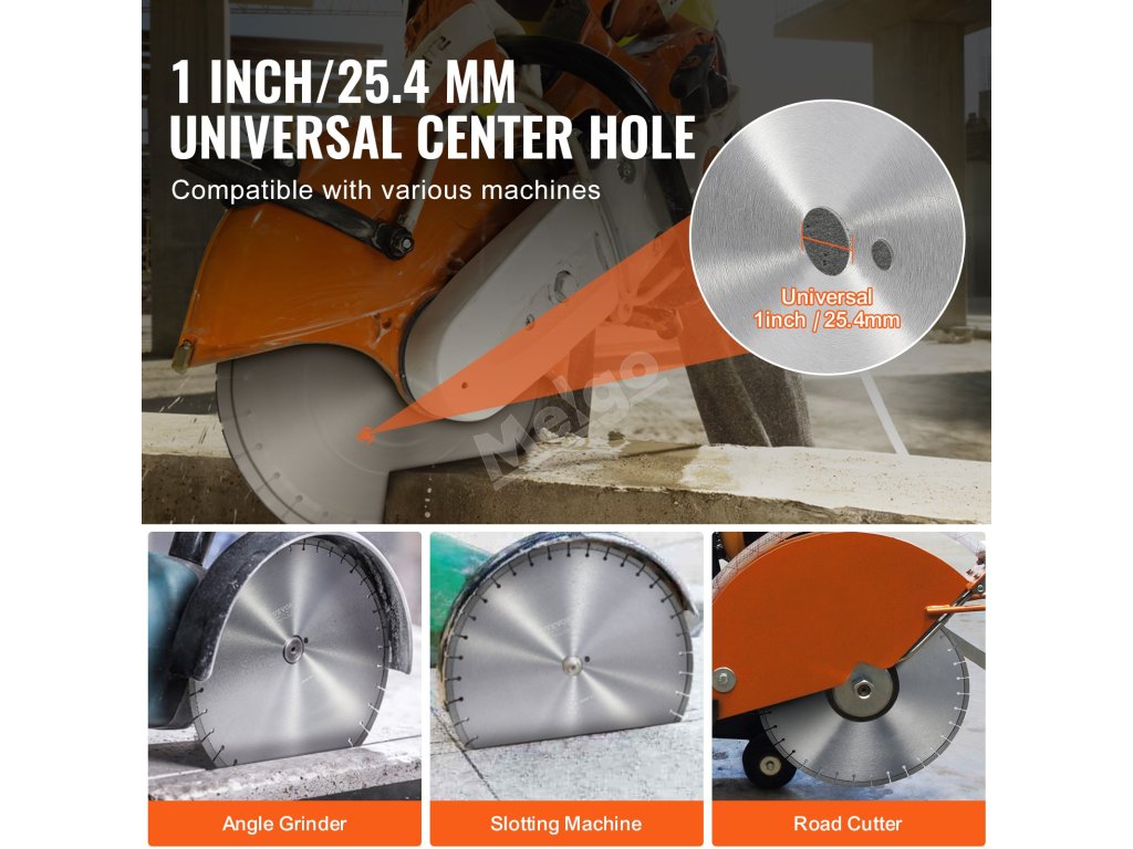 Náš diamantový kotouč na beton má univerzální středový otvor o průměru 1 palec/25,4 mm, který je kompatibilní s většinou zařízení na trhu. Snadno se přizpůsobí, ať už jde o drážkování cest na stavbách nebo řezání dlaždic při každodenních opravách.