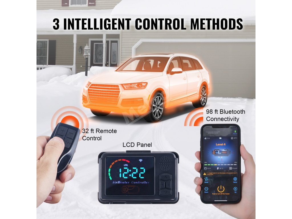 Dieselový ohřívač 12V 8 kW s Bluetooth LCD 0.16–0.62 L/hour