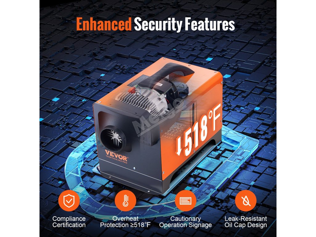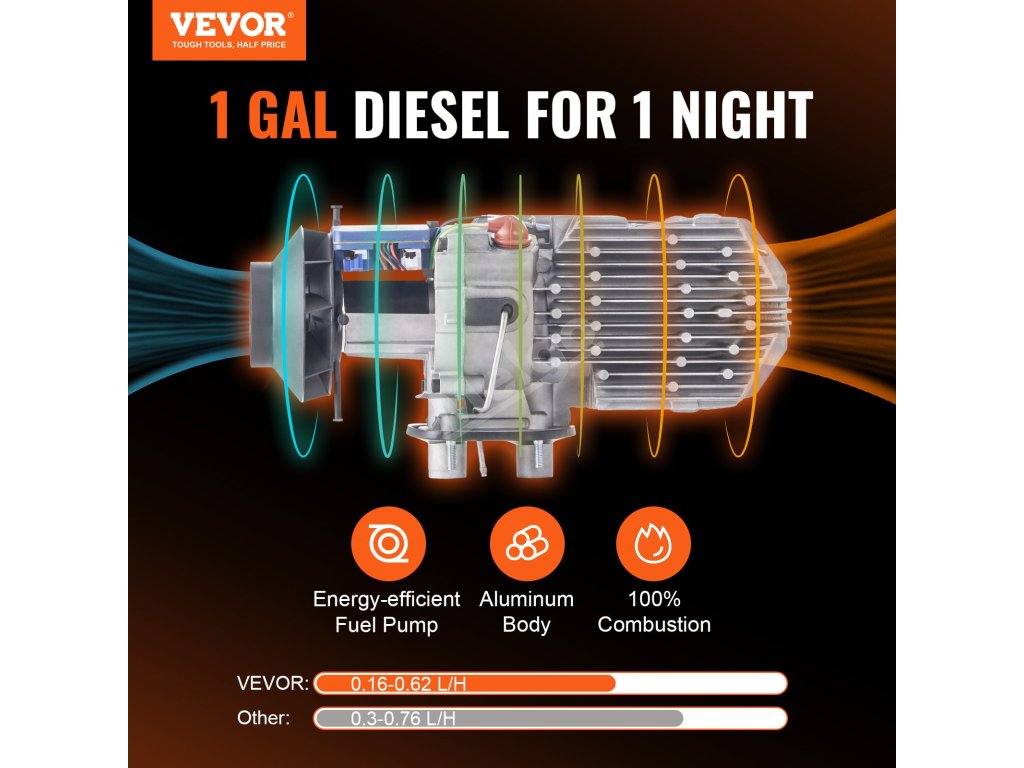 Už nemusíte snášet nepohodlí při jízdě v mrazu. Olejové vytápění VEVOR je dokonalým řešením pro váš osobní automobil, obytný vůz, nákladní automobil a další. Rychle dodává stálý proud teplého vzduchu, čímž eliminuje chladnou atmosféru ve vašem vozidle a zajišťuje komfortní cestování.