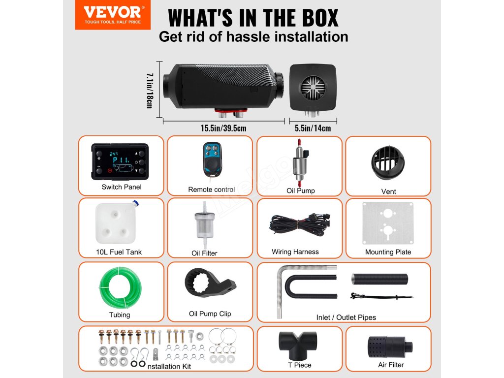 Nenechte se odradit chladnou zimou od cestování, kempování ve čtyřech ročních obdobích a udržování tepla. Dieselový ohřívač vzduchu VEVOR je připraven ohřát se nad vaše očekávání, rychle se zahřeje a při provozu si zachovává nízkou hladinu hluku. Díky nízké spotřebě paliva a energie je vhodný pro dlouhodobý provoz. Tento 12V naftový parkovací ohřívač můžete nainstalovat kamkoli do vozidla a snadno jej ovládat pomocí dálkového ovladače nebo LCD panelu. Snadné ovládání, účinné vytápění, to vše ve VEVOR!