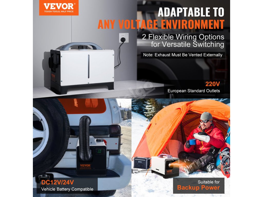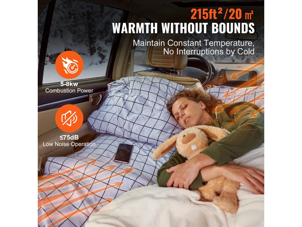 Nově vylepšené naftové topení je vybaveno dvěma možnostmi připojení k elektrické síti, takže můžete využívat nepřetržité teplo na různých místech, například v autě. Díky nízké spotřebě paliva 0,16 l - 0,62 l/h a nízké hlučnosti ≤75 dB neruší při kempování v obytném automobilu.