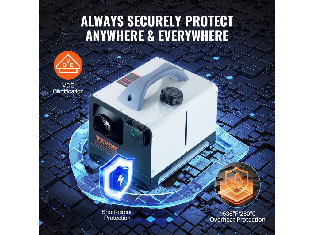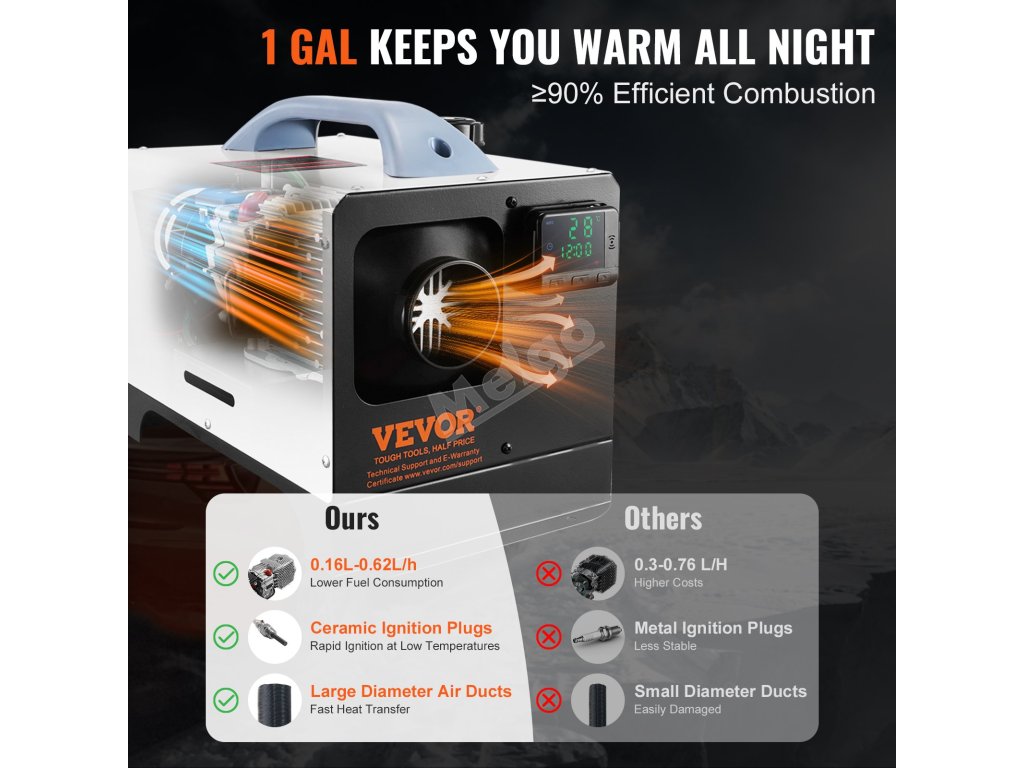 Dieselové ohřívače mají topný výkon 5-8 kW, což dokáže rychle vytopit prostor o rozloze 215 ft²/20㎡. Nízká spotřeba paliva zaručuje, že se nebudete cítit zatíženi náklady.
