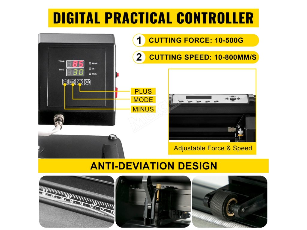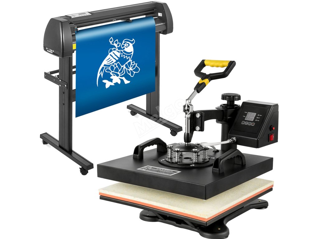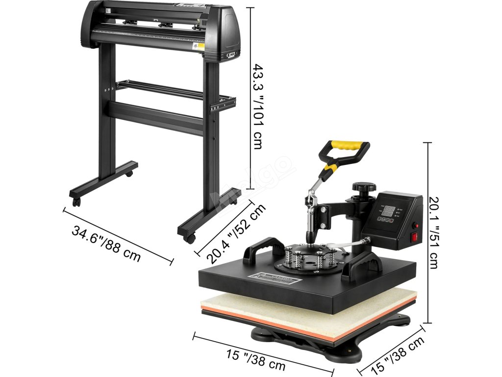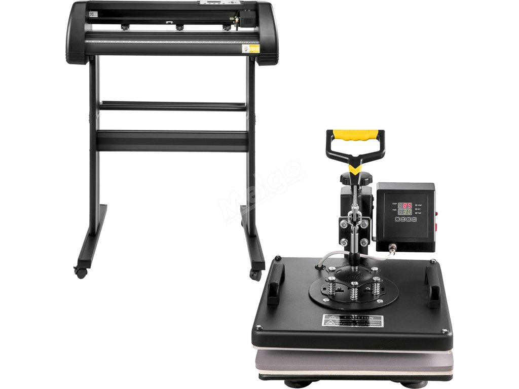 Tato kompletní sada se skládá ze dvou profesionálních zařízení, konkrétně z řezačky vinylu a tepelného lisu. řezací plotr s úhlopříčkou 28" vám umožní vyřezávat vlastní vzory a předměty podle vašich představ. Tepelný lis o průměru 15" je ideální pro přenos těchto personalizovaných obrázků na trička, tašky, puzzle atd.