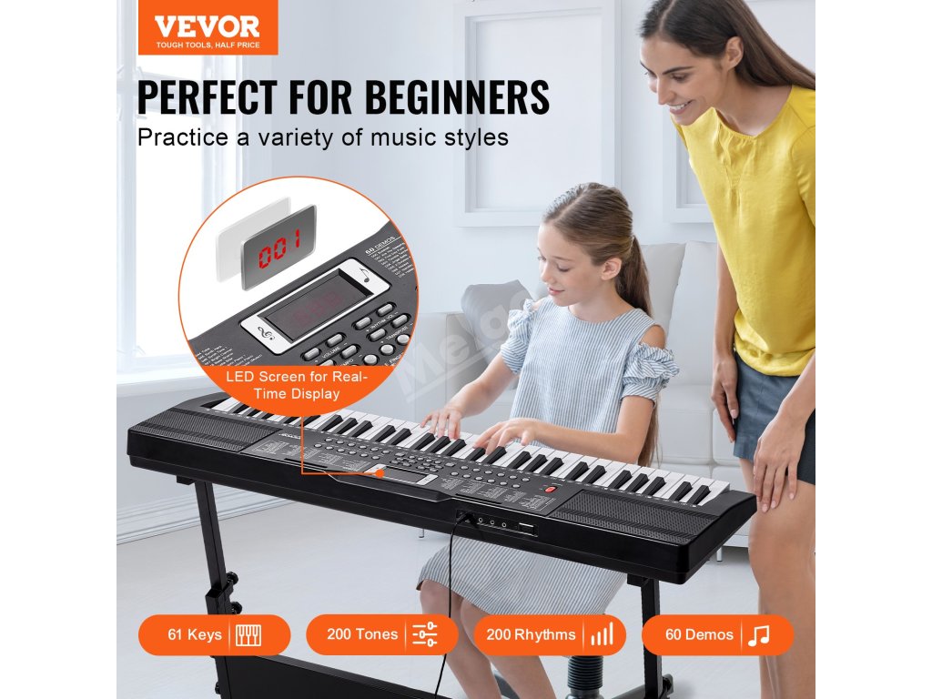 Digitální klávesy 61 kláves, 200 tónů, 200 rytmů, 60 skladeb
