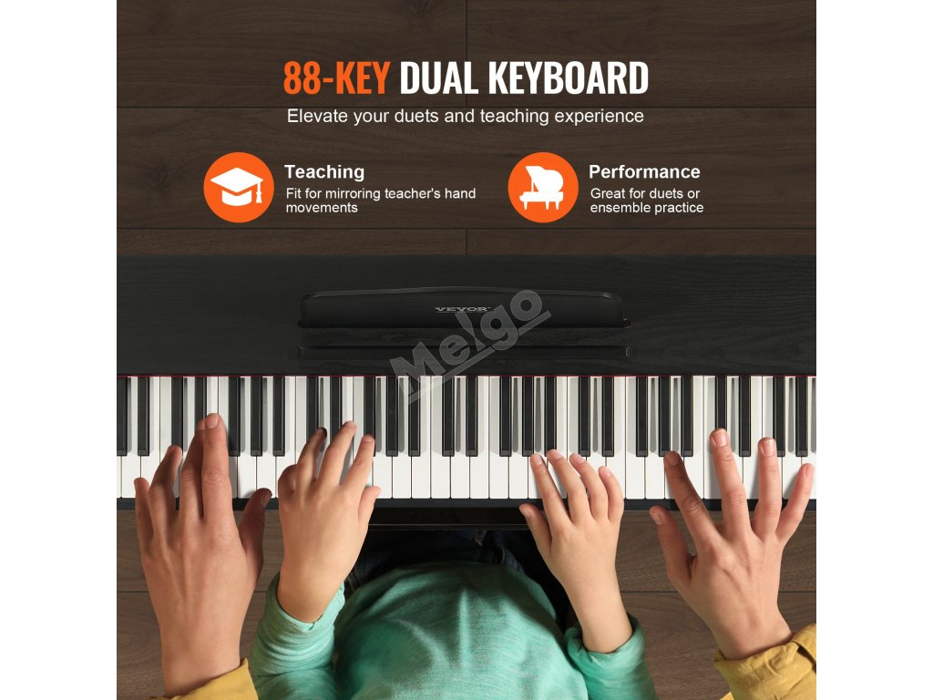 Toto digitální piano s 88 klávesami a plnou výbavou je vybaveno režimem dvou kláves pro profesionální hráče a dokáže zahrát 200 not. Díky vestavěným duálním reproduktorům, podpoře přenosu MIDI a Bluetooth a konektorům pro připojení zvuku a mikrofonu můžete připojit sluchátka pro pohlcující výuku a vstoupit do světa hudby!