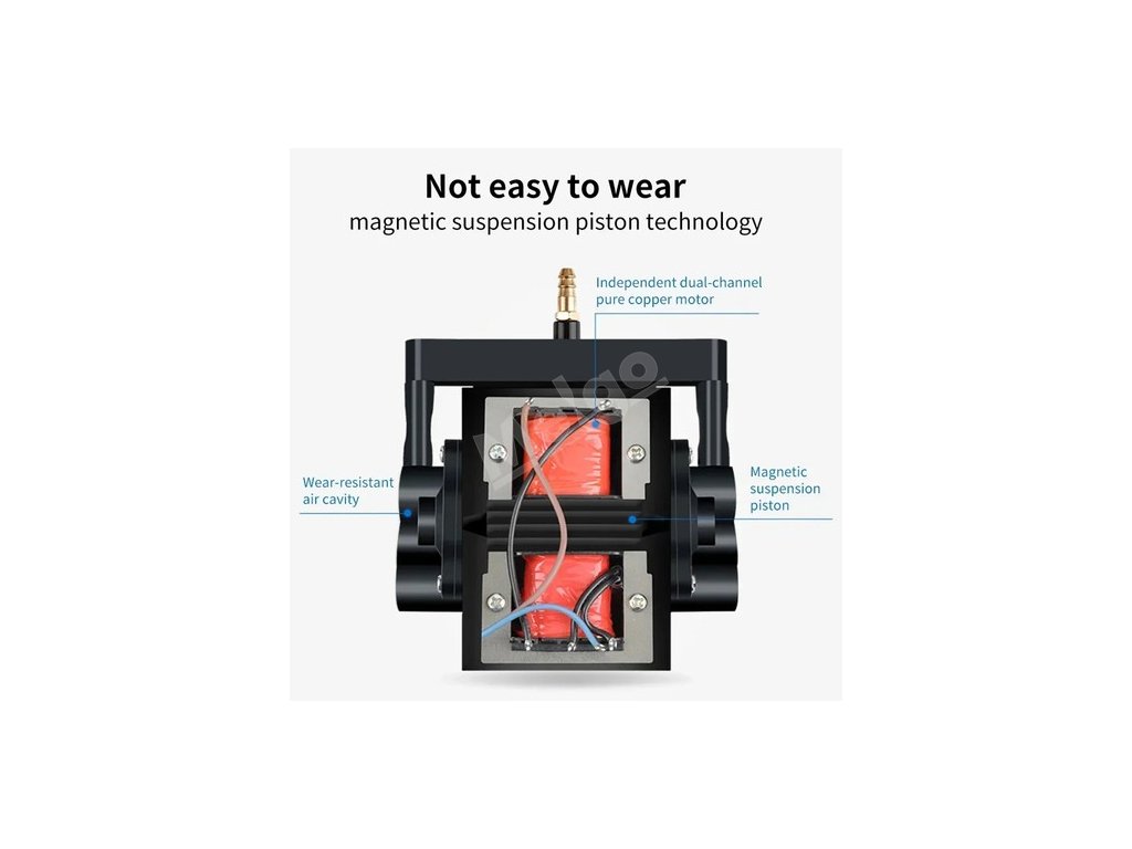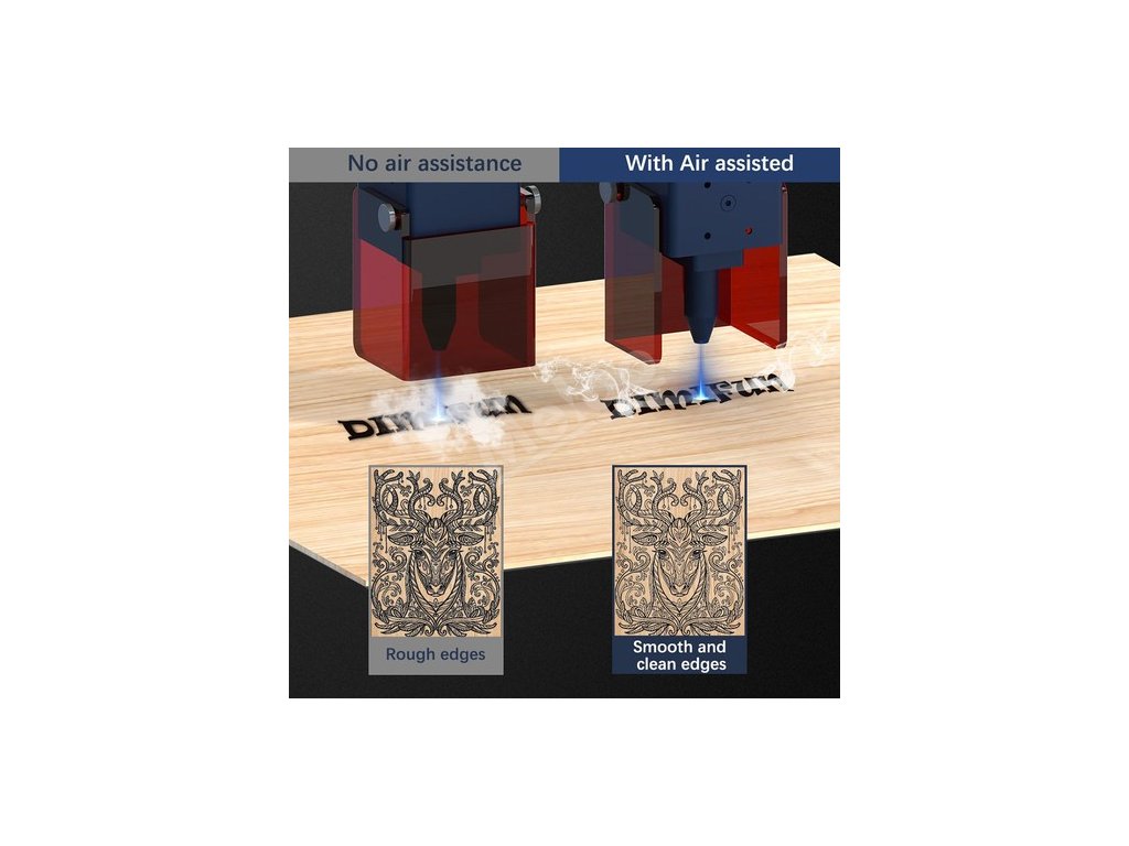 Stabilní proud vzduchu vzduchového čerpadla účinně odstraňuje nečistoty a kouř vznikající během provozu, chrání čočku laserové hlavy před znečištěním, snižuje znečištění čočky o 90 % a prodlužuje životnost laserové hlavy.