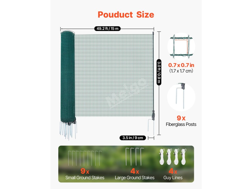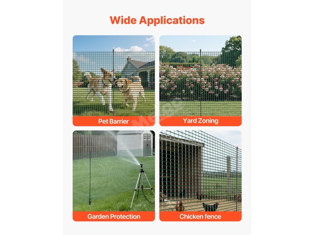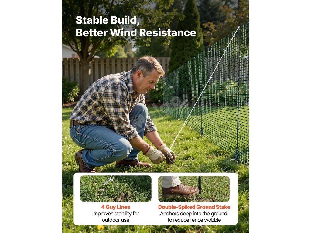 Plastový plot VEVOR s mříží a sloupky vám pomůže rychle vytvořit bezpečné dočasné ohrazení zahrady, dvora a kurníku. Je vyroben z odolné PE sítě a obsahuje sloupky ze skelných vláken, zemní kůly a napínací lana, což zajišťuje dlouhodobou a stabilní nosnou konstrukci.