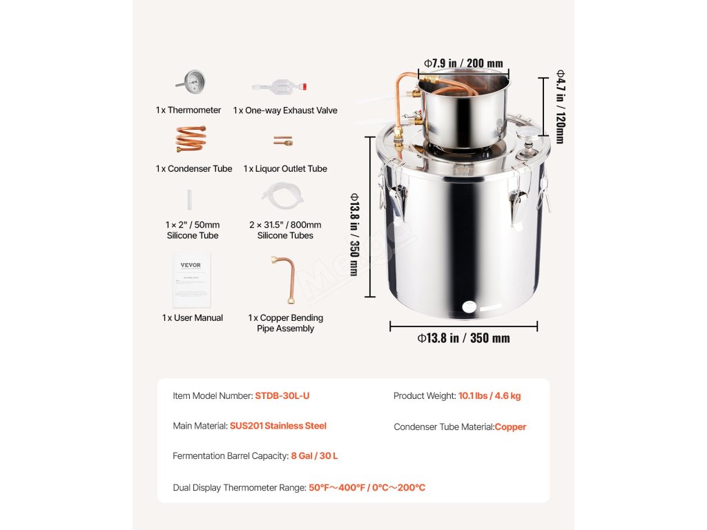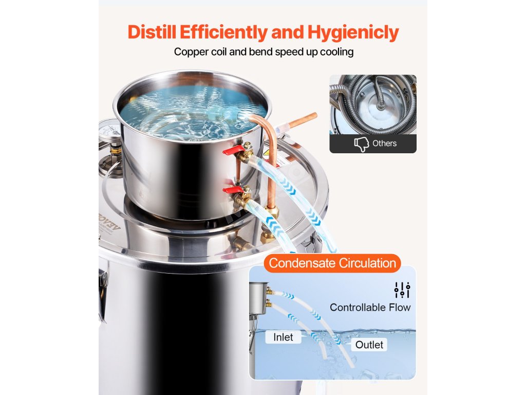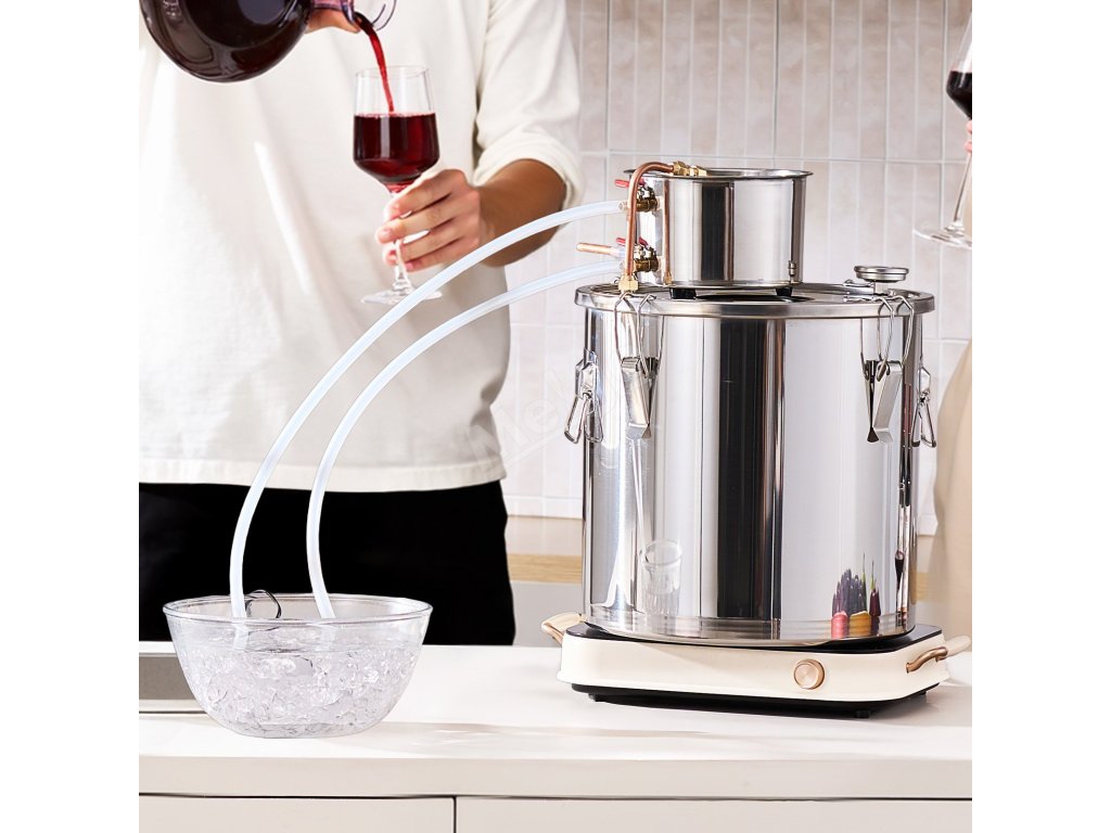 Upřímnost a řemeslná zručnost září! Tento destilátor je ideální pro začátečníky, kteří si mohou doma vařit a vyrábět ovocná vína, rum, vodku, destilovanou vodu a další destilované produkty.
