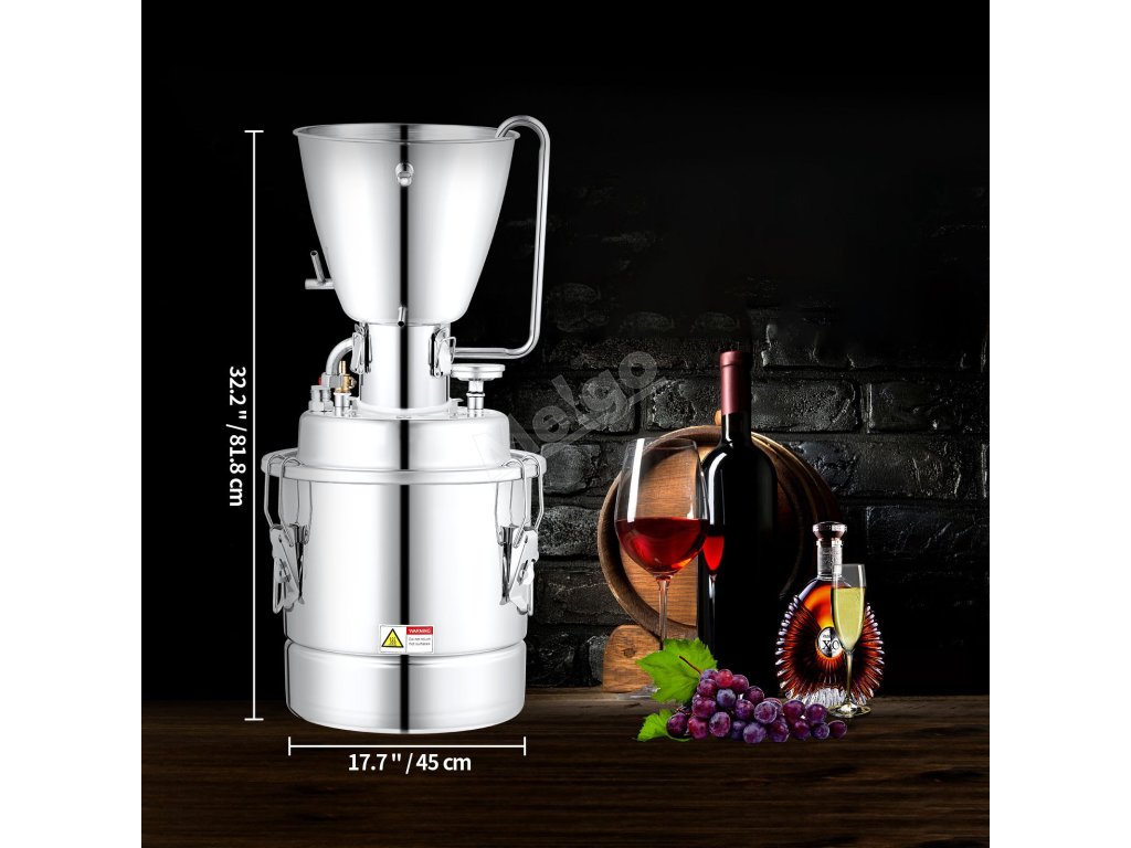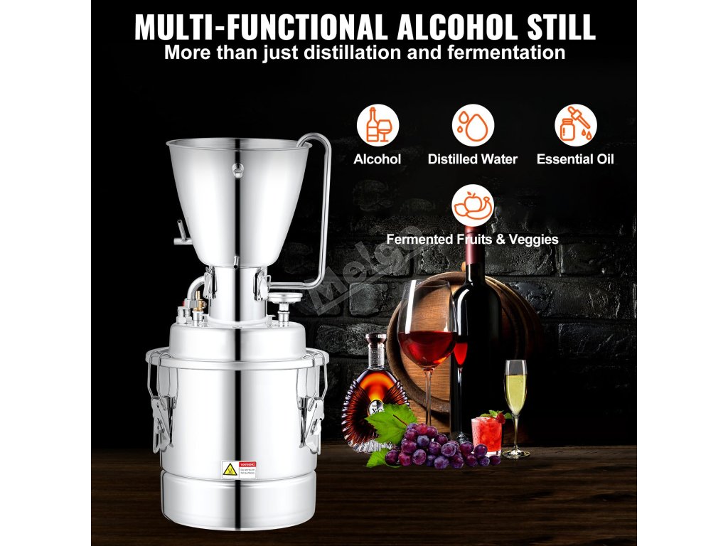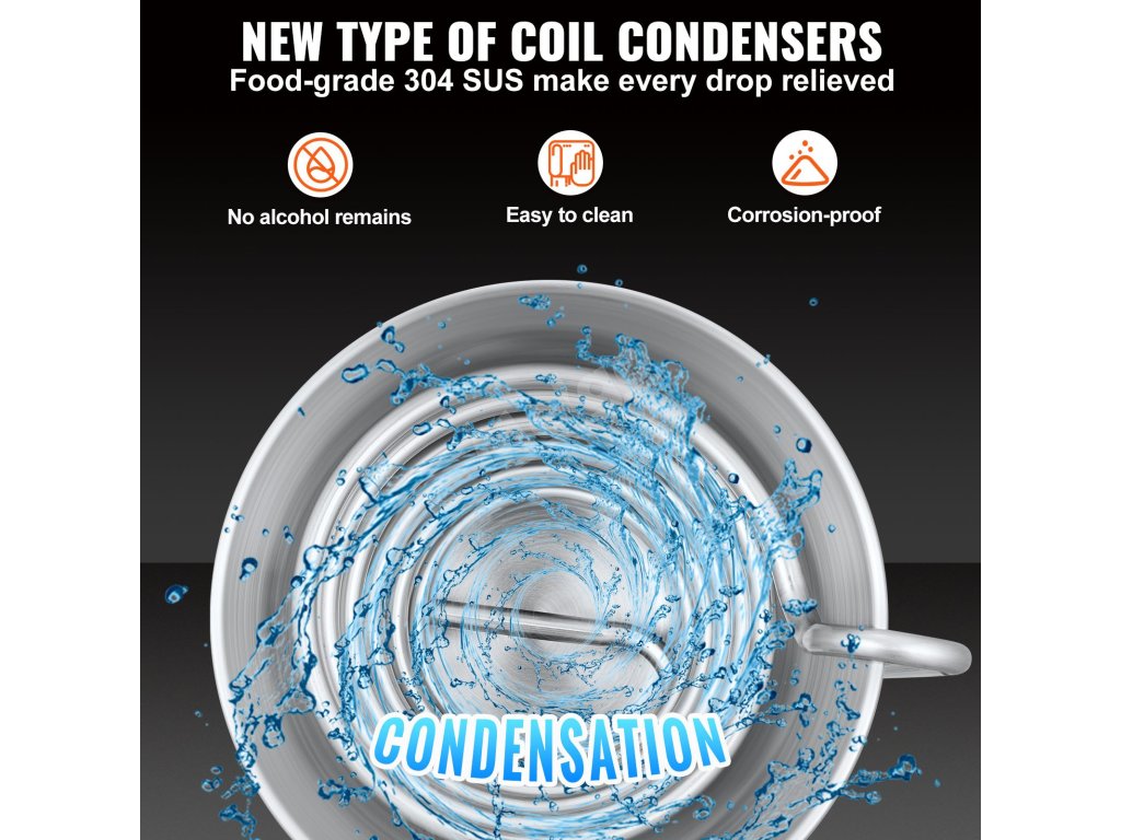 Tato sada destilačního zařízení je ideální pro začátečníky i profesionály. Pomocí jednodušší a účinnější metody destilace s konstrukcí kondenzátoru 304 cívek mohou i začátečníci destilovat whisky, brandy a různá ovocná vína, vodu a esenciální oleje.