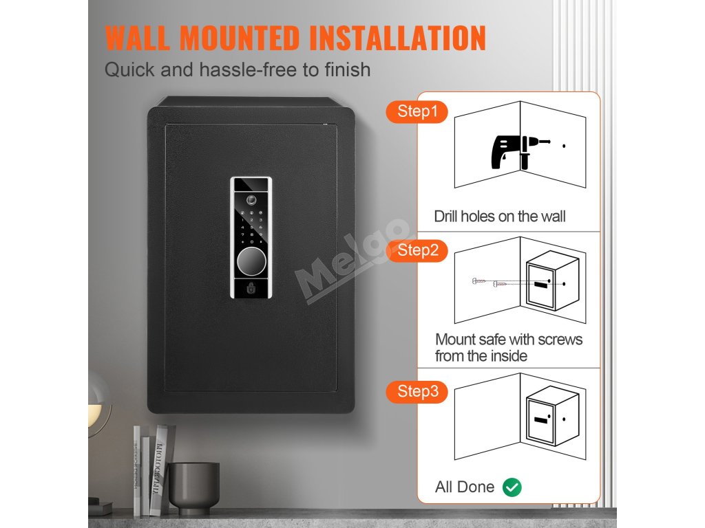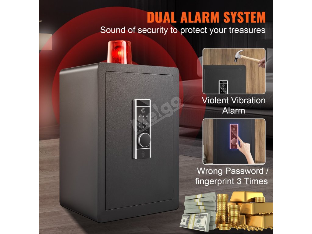 Trezor VEVOR používa uhlíkovú oceľ valcovanú za studena. To zaručuje odolnosť. Ponúka viacero prístupových metód vrátane hesla, kľúča, odtlačku prsta a hesla. Táto všestrannosť vám umožňuje vybrať si metódu, ktorá najlepšie vyhovuje vašim potrebám. Oceľová konštrukcia poskytuje silnú ochranu. Budete mať pocit pokoja. Viacero možností prístupu dodáva ďalšiu úroveň pohodlia. Svoje cennosti si môžete bez problémov vyzdvihnúť. Táto kombinácia odolnosti a všestrannosti z neho robí vynikajúcu investíciu do zabezpečenia domácnosti.