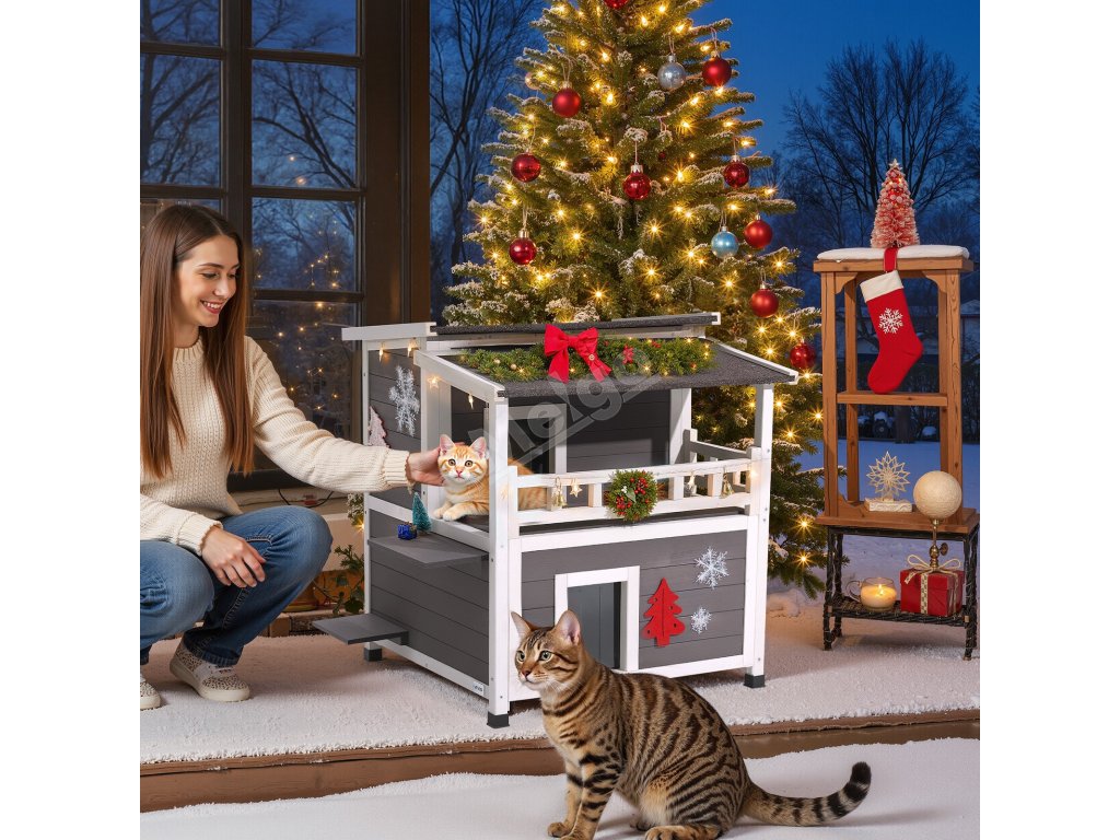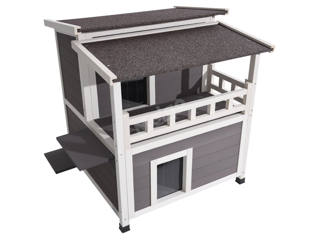 Domeček pro kočky, dvoupatrový, pěnová izolace, 84×75×82 cm
