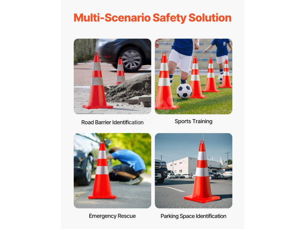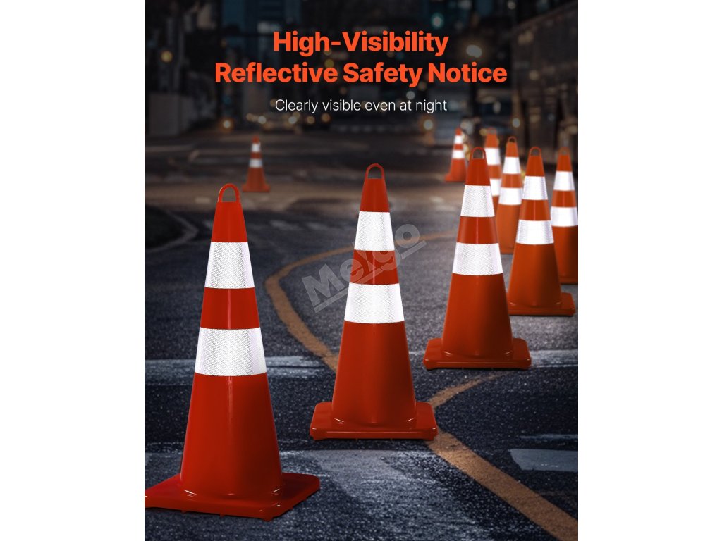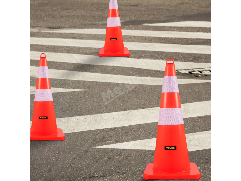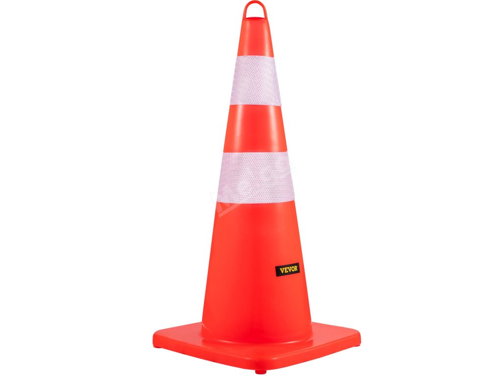 Tyto 28palcové bezpečnostní kužely jsou pevné a po přejetí autem se nerozbijí, protože jsou vyrobeny z PVC. Tento dopravní kužel je tedy pružný a okamžitě se vrátí do standardního tvaru.