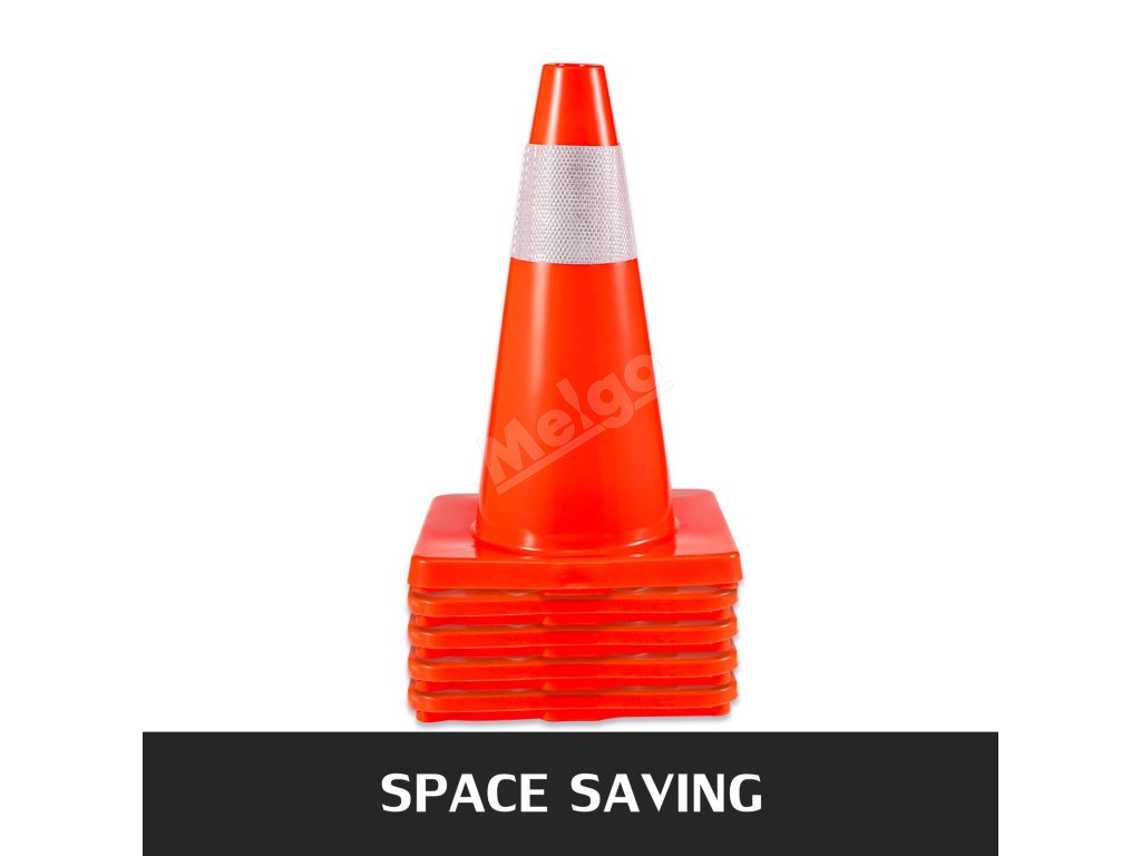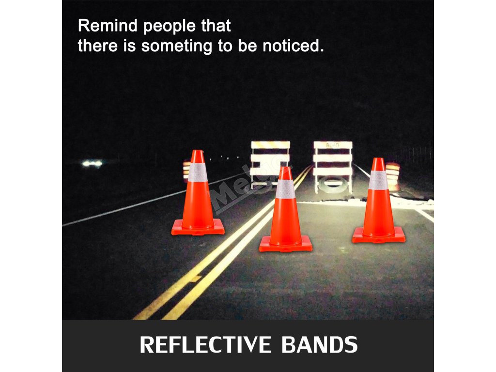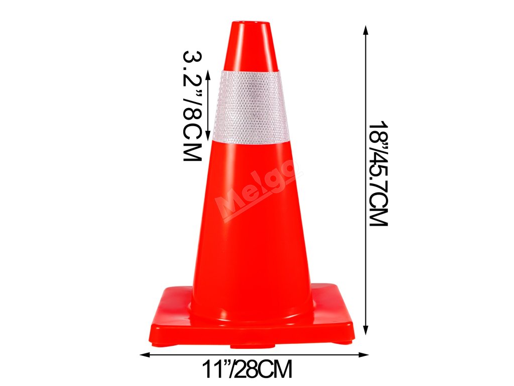 Díky oslnivé červené barvě a jednomu reflexnímu pruhu jsou naše dopravní kužely velmi nápadné a viditelné ve dne i v noci. dokonalá výška 18" zvyšuje viditelnost.