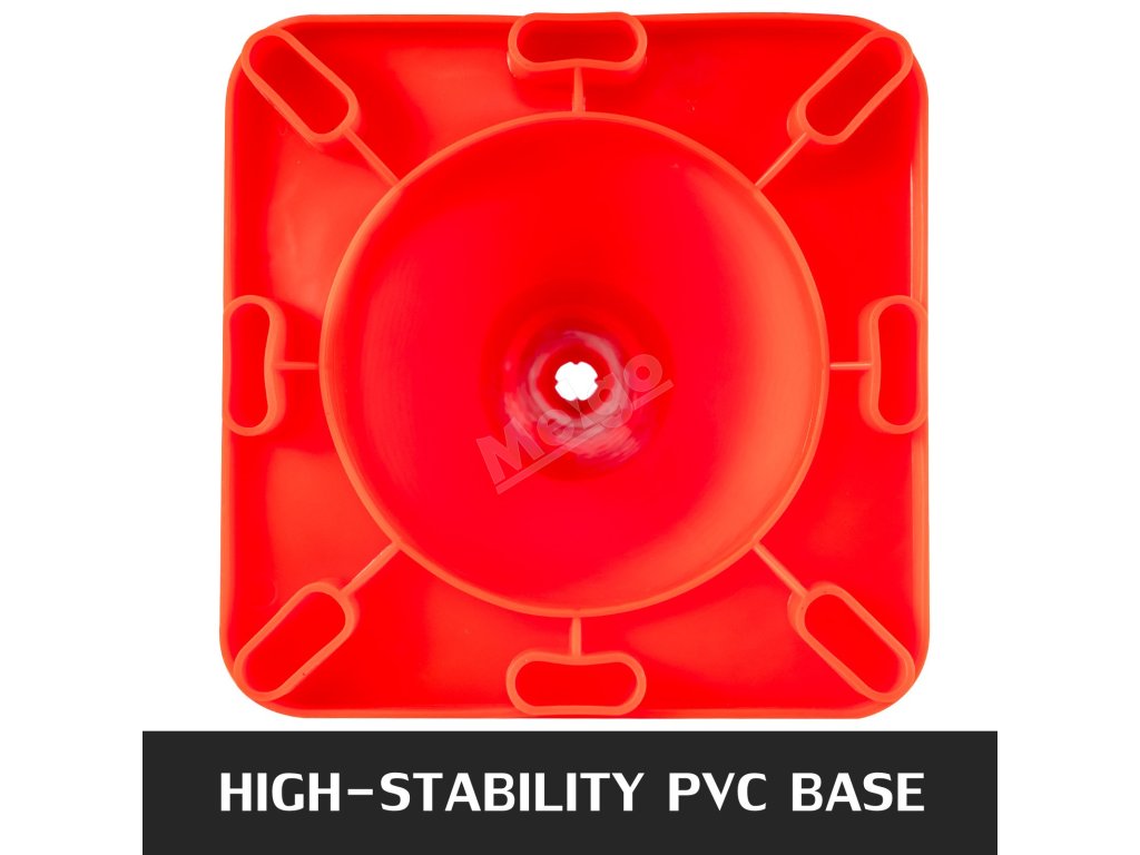 díky velkému čtvercovému dnu o rozměrech 11 × 11" se dopravní kužel nesnadno převrátí a vítr ho nesrazí. Zůstane stát přesně tam, kam ho umístíte.