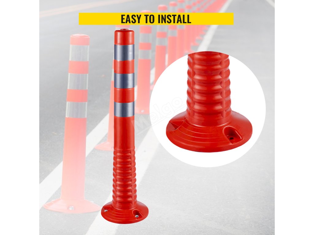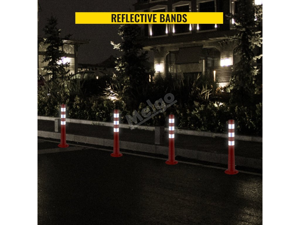 Výstražné kužely lze upevnit pomocí rozpěrných šroubů (nejsou součástí dodávky). Upevnění sloupků do země pomocí těchto šroubů zabere jen několik minut.