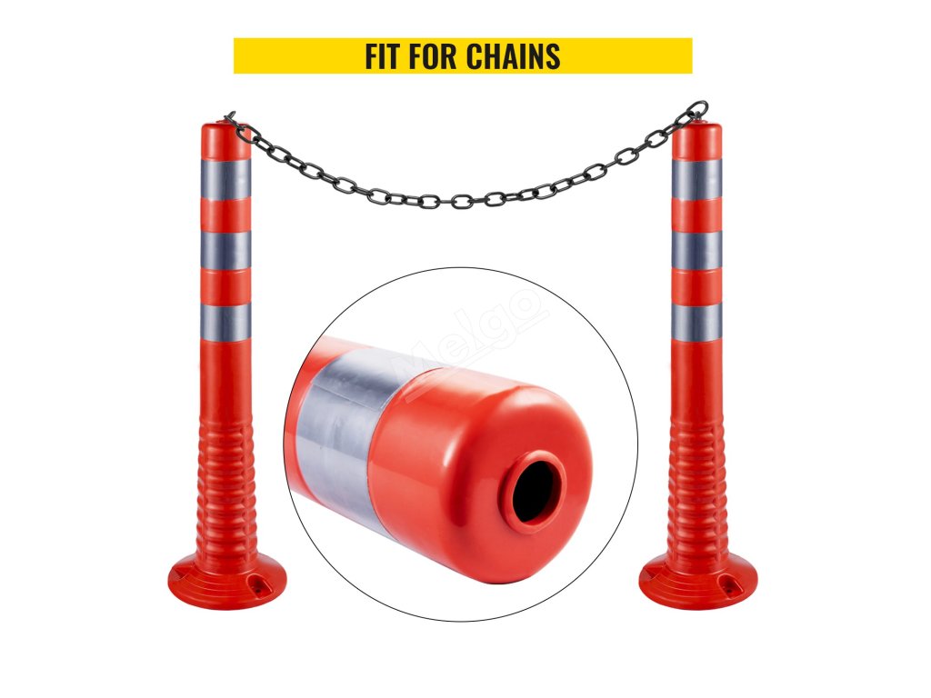 Oranžové výstražné kužely mají na horní straně montážní otvory, které lze připojit k řetězům. Plní tak stejnou úlohu jako svodidla.