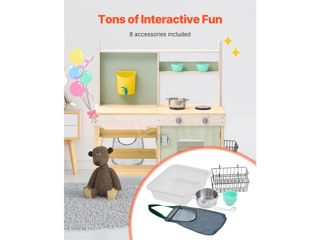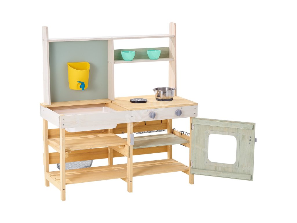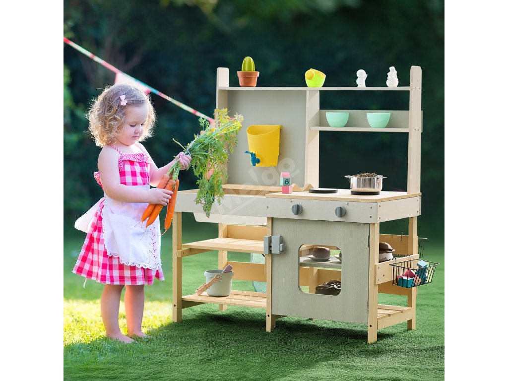 Dřevěná dětská zahradní kuchyňka na hraní s blátem a příslušenstvím