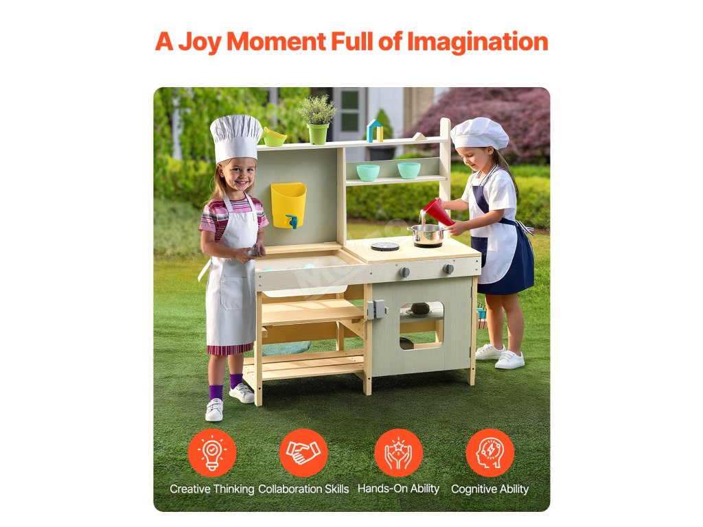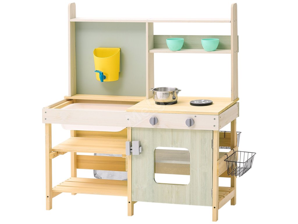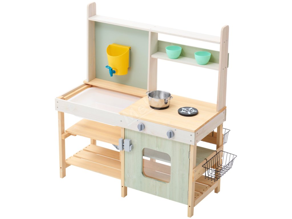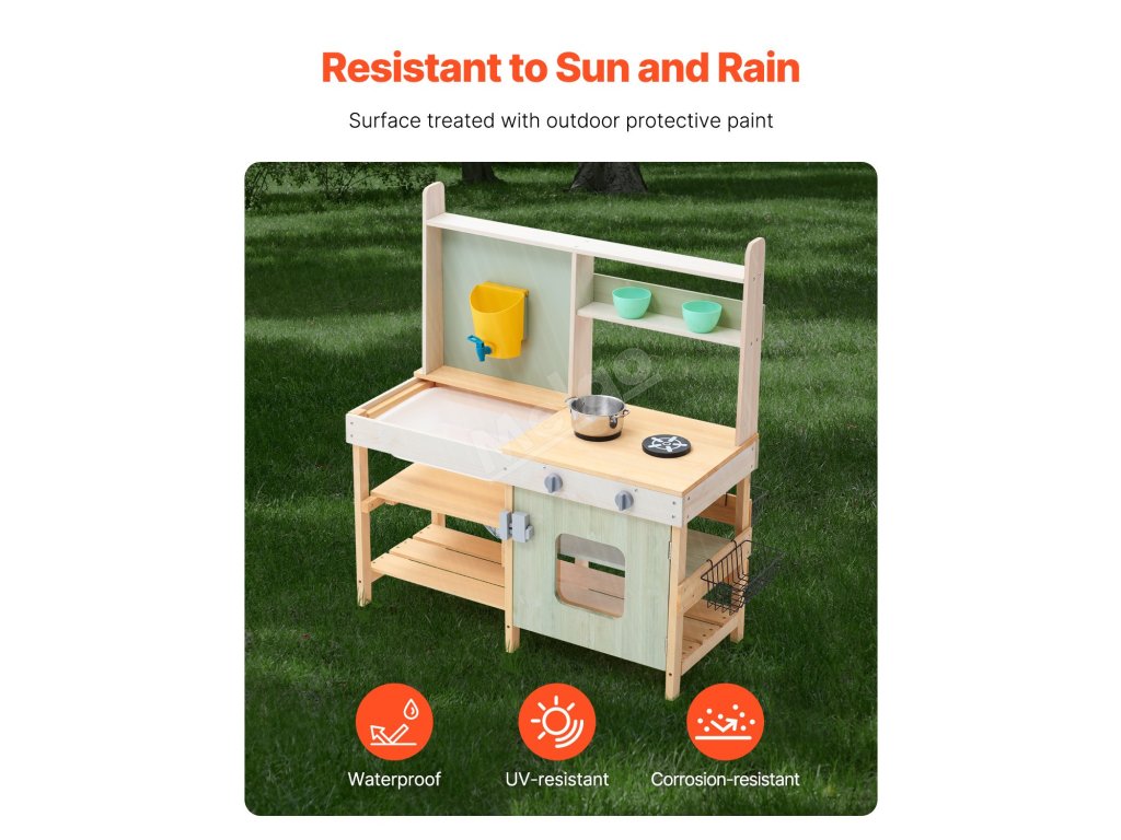 Tato nápaditá hrací kuchyňka pro batolata je opatřena venkovní barvou, která je odolná proti vodě a korozi, takže je ideální pro venkovní prostředí, jako jsou zahrady, dvory a trávníky.