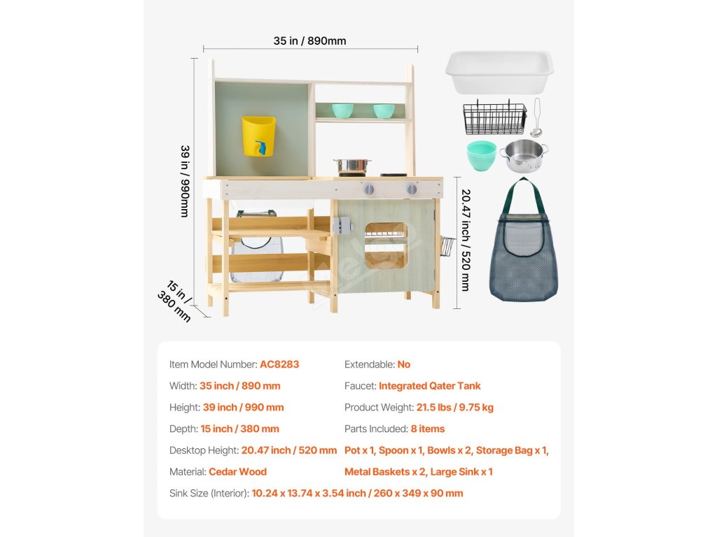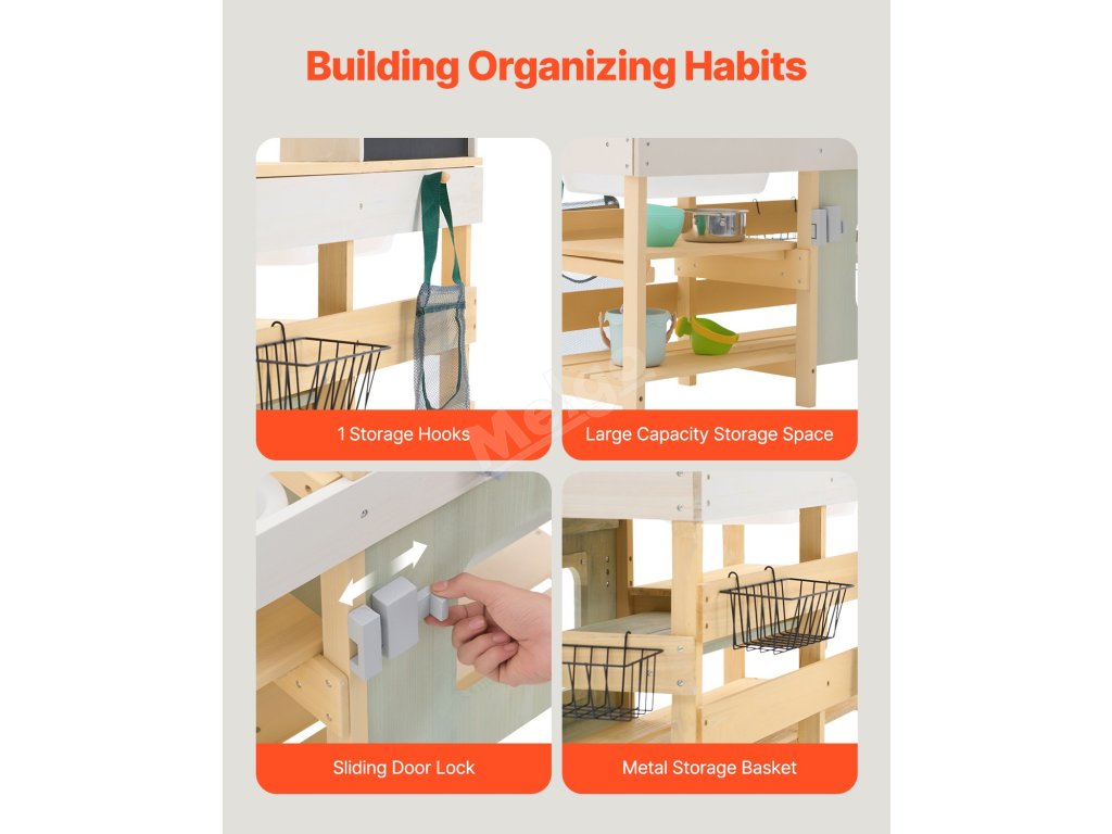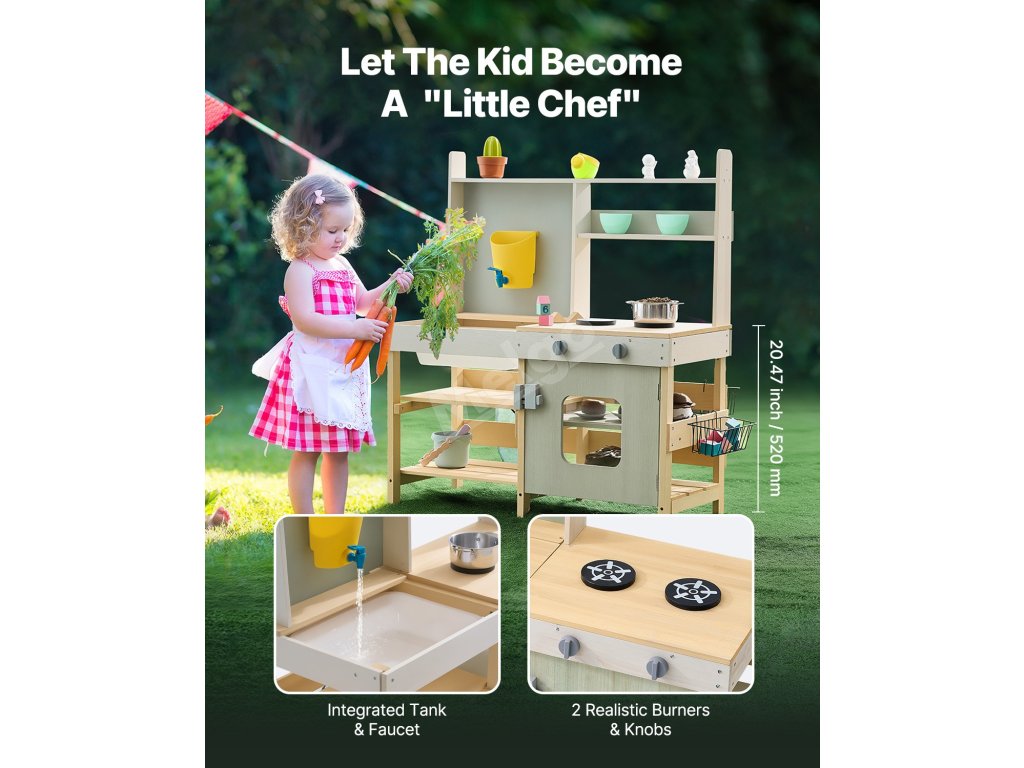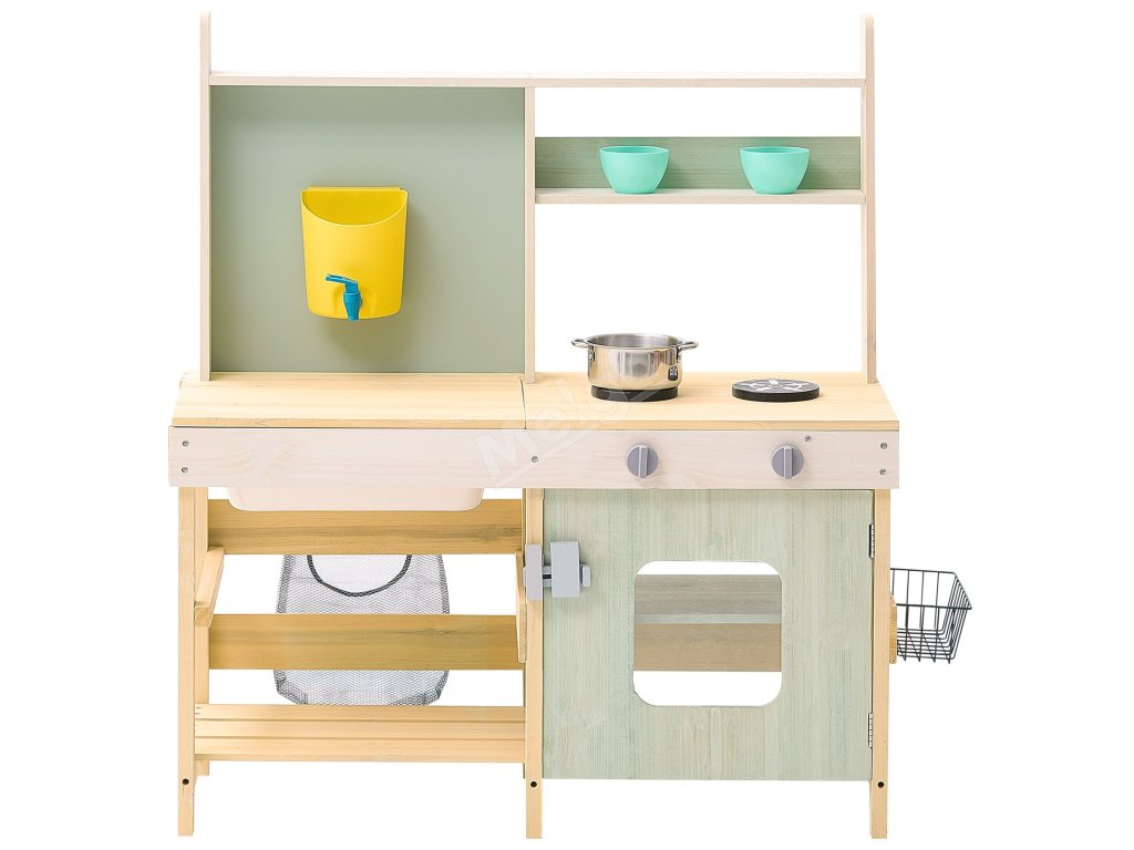 Tato nápaditá hrací kuchyňka pro batolata je opatřena venkovní barvou, která je odolná proti vodě a korozi, takže je ideální pro venkovní prostředí, jako jsou zahrady, dvory a trávníky.