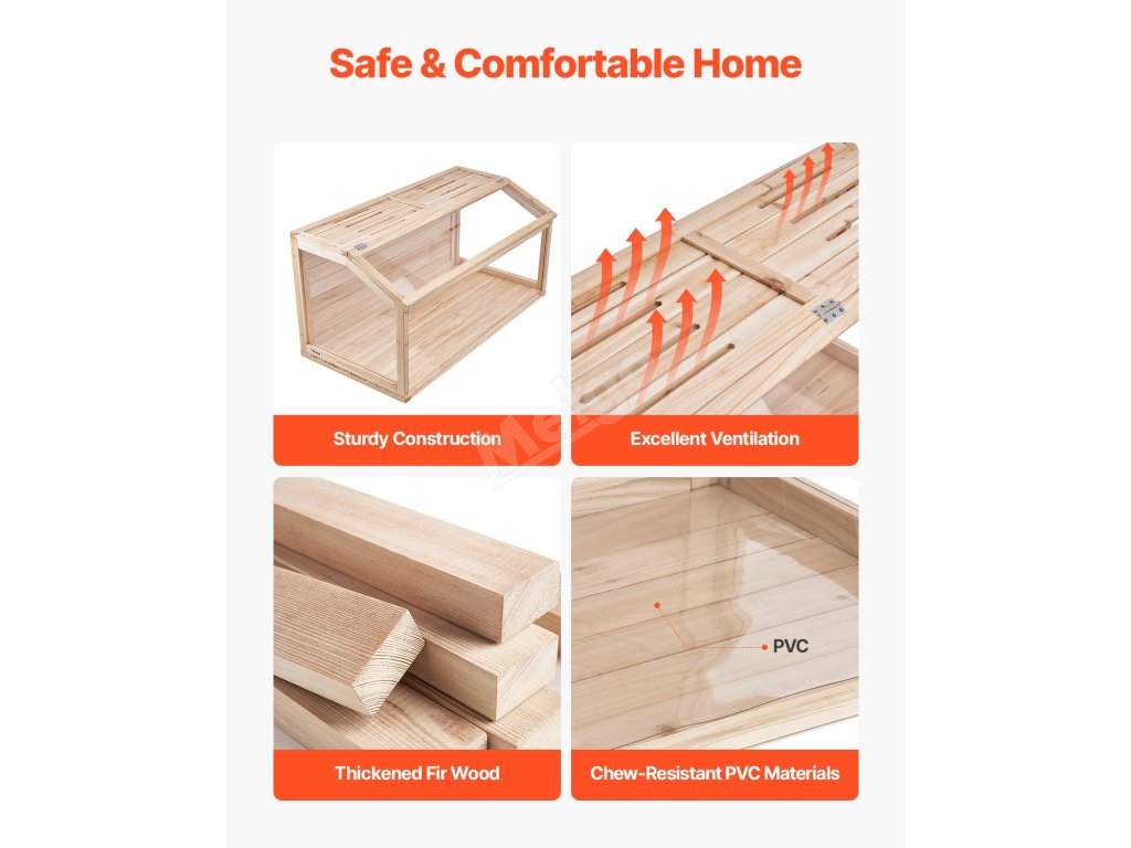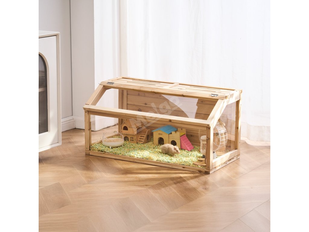 Tato 32palcová dřevěná klec pro křečky je vhodná pro různé druhy křečků, má pevnou konstrukci a vynikající ventilaci. Tři průhledné stěny umožňují snadné pozorování. Horní panel nastavitelný v úhlu 270 stupňů usnadňuje čištění a jednoduchá montáž zajišťuje pohodlí.