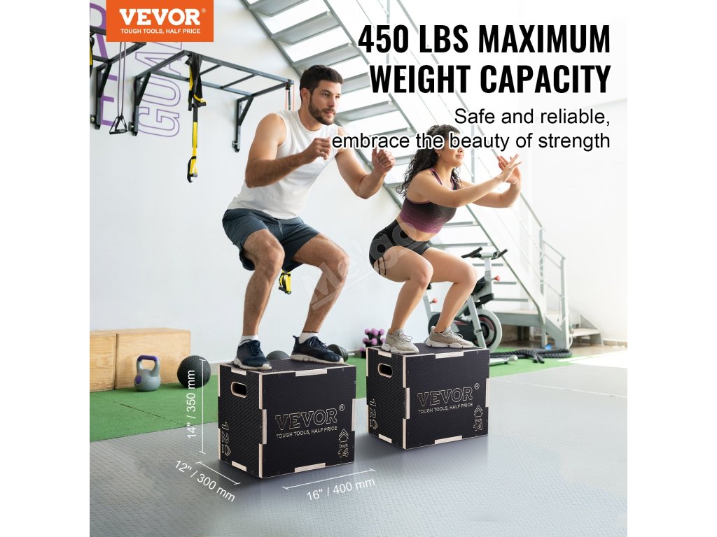 Dřevěná plyometrická bedna 3v1 16/14/12 inch protiskluzová plošina