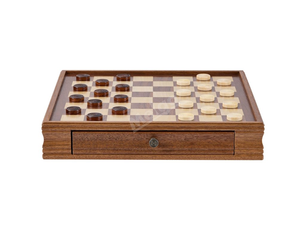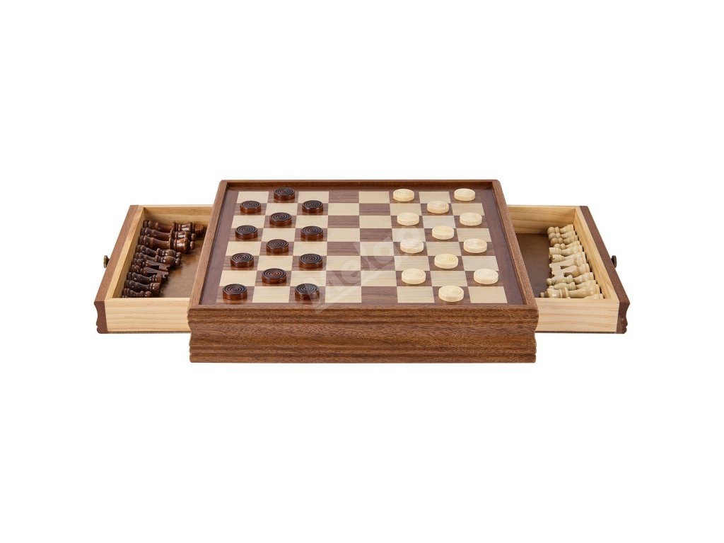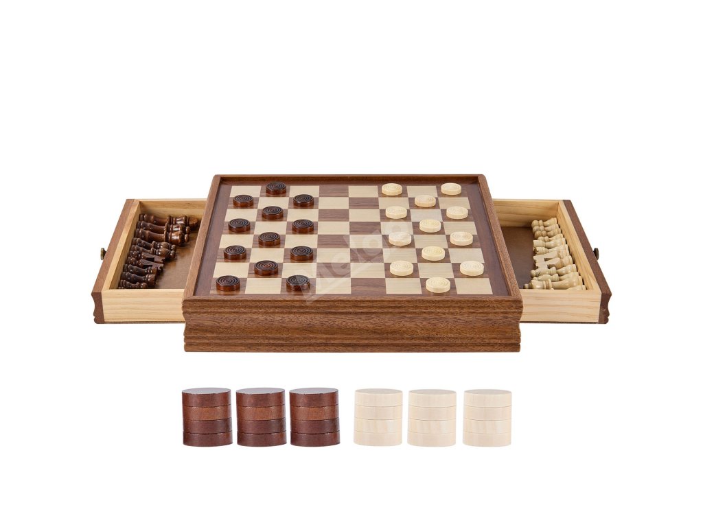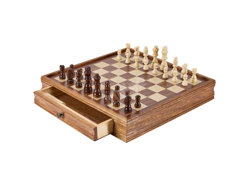 Dřevěná šachová souprava 15 inch 2v1 se zásuvkou, vážené figury