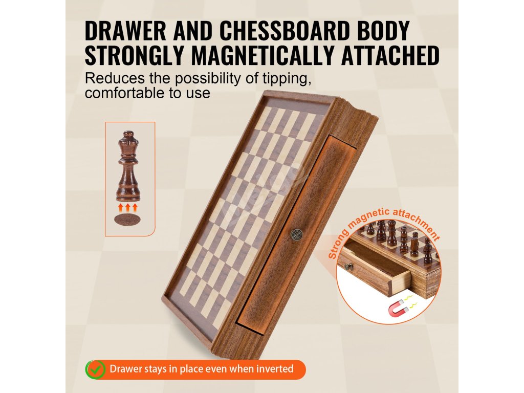 Zásuvka a tělo šachovnice jsou pevně magneticky spojeny, aby se snížila možnost převrácení zásuvky a zabránilo se pádu, což lépe chrání vaše šachové figurky. Zaručuje také pohodlí a klid při používání, i když děti zásuvku omylem převrhnou.