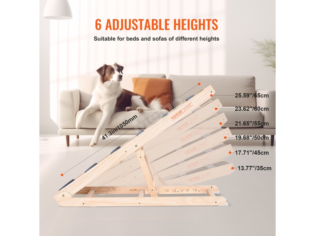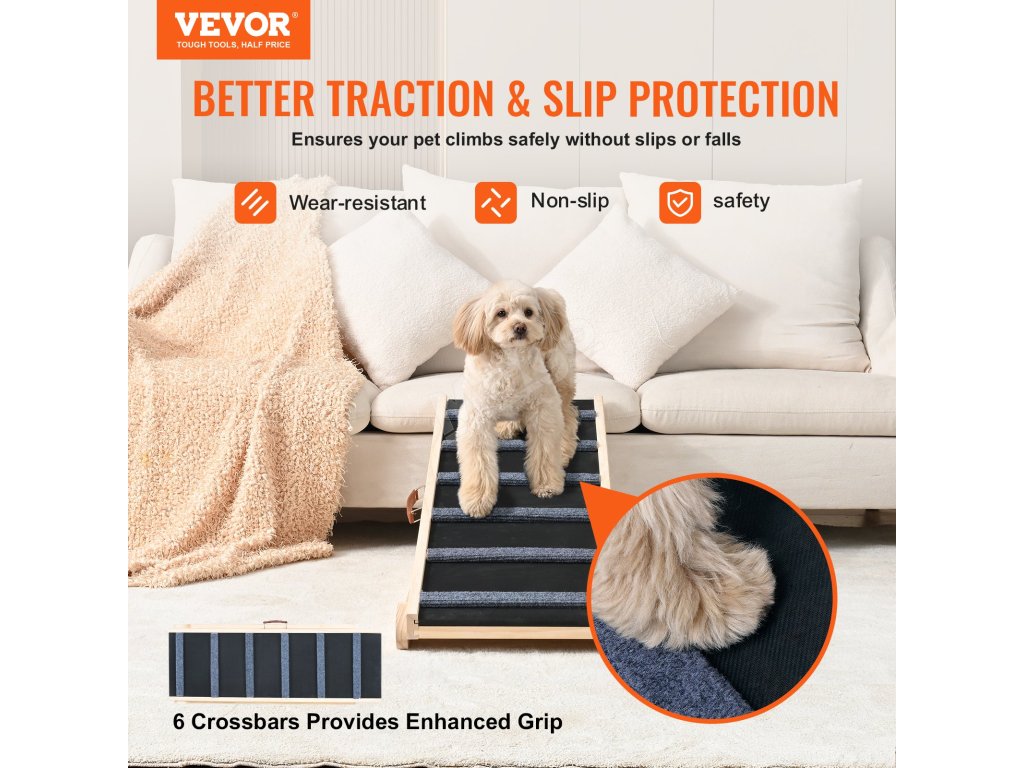 Tato rampa pro psy s nastavitelnou konstrukcí a délkou 41,3 palce pomůže vašim chlupatým přátelům dosáhnout na postele, pohovky, okenní parapety a dokonce i bezpečně nastoupit a vystoupit z auta.