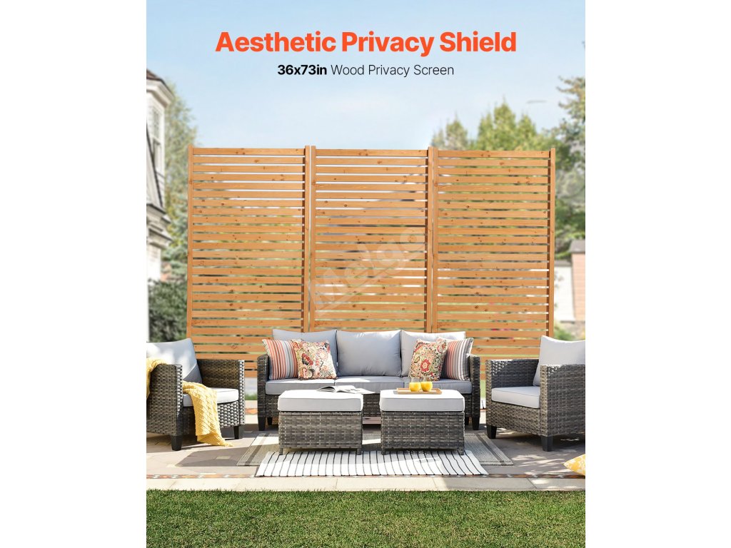 Tato dřevěná zástěna na ochranu soukromí o rozměrech 36 × 76 palců nabízí odolnou konstrukci odolnou proti korozi, která se časem nezkroutí. Díky své mírné odolnosti proti větru je ideální pro použití na zahradách, terasách a dvorcích, kde vytváří soukromý prostor. Lze ji také použít v interiéru jako stylovou přepážku k rozdělení prostoru.