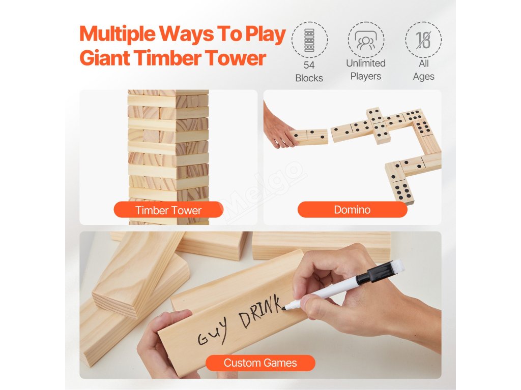 Tato dřevěná hra se skládáním věží dodá každé akci nekonečnou zábavu a podporuje komunikaci a kamarádství. Je to skvělý způsob, jak každý může zažít výzvu a úspěch a zároveň prohloubit přátelství.