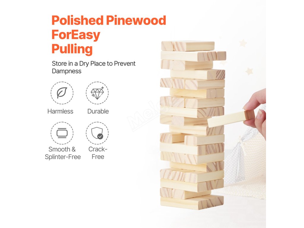 Tato hra s vyklápěcími věžemi je vyrobena z vysoce kvalitního leštěného borovicového dřeva, je netoxická, odolná a nárazuvzdorná. Hladký povrch bez třísek usnadňuje odstraňování bloků.