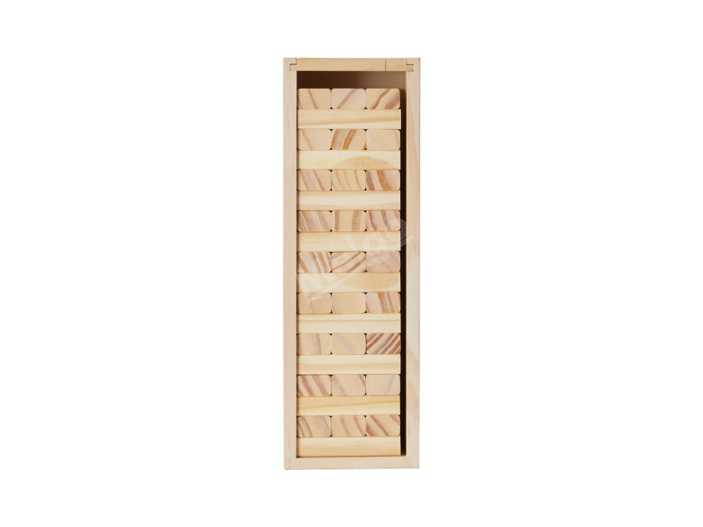 Dřevěná věž na skládání 54 bloků z borovice s úložným boxem