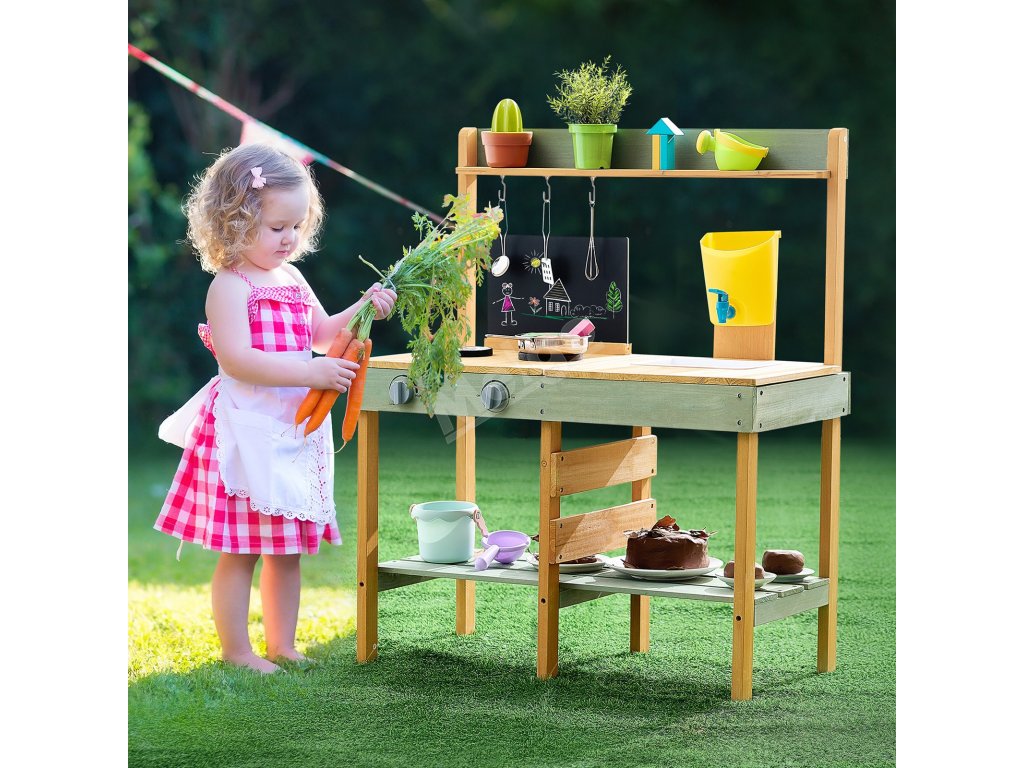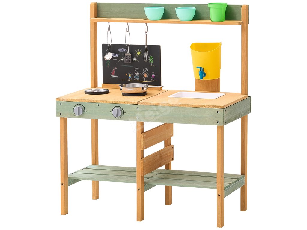 Dřevěná zahradní kuchyňka pro děti na hraní venku s blátem a pískem