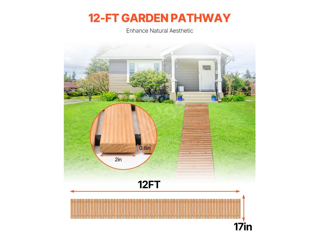 Či už na pláži, v snehu alebo pozdĺž štrkovej cesty, tento drevený záhradný chodník sa bez námahy prispôsobí a poskytne stabilný a atraktívny povrch na chôdzu.