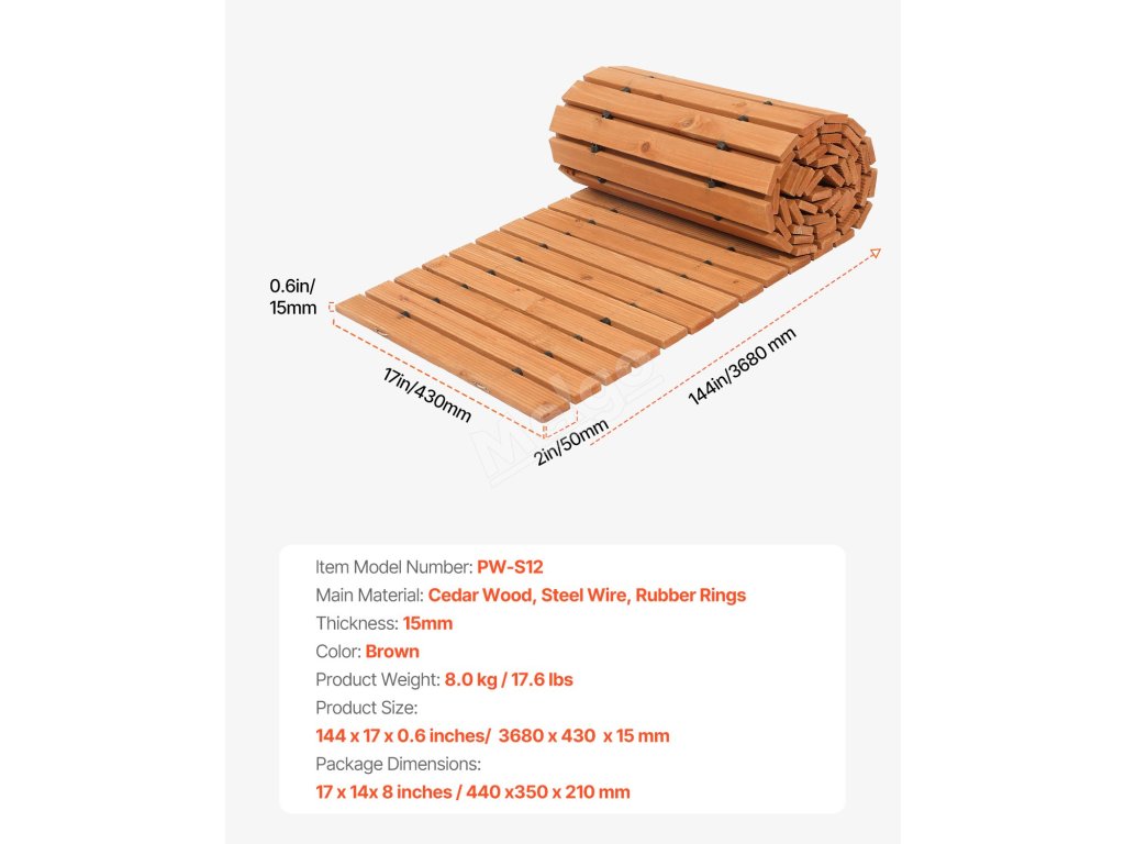 Dřevěná zahradní rohož 12 ft × 17 in protiskluzová, rovná s lankem