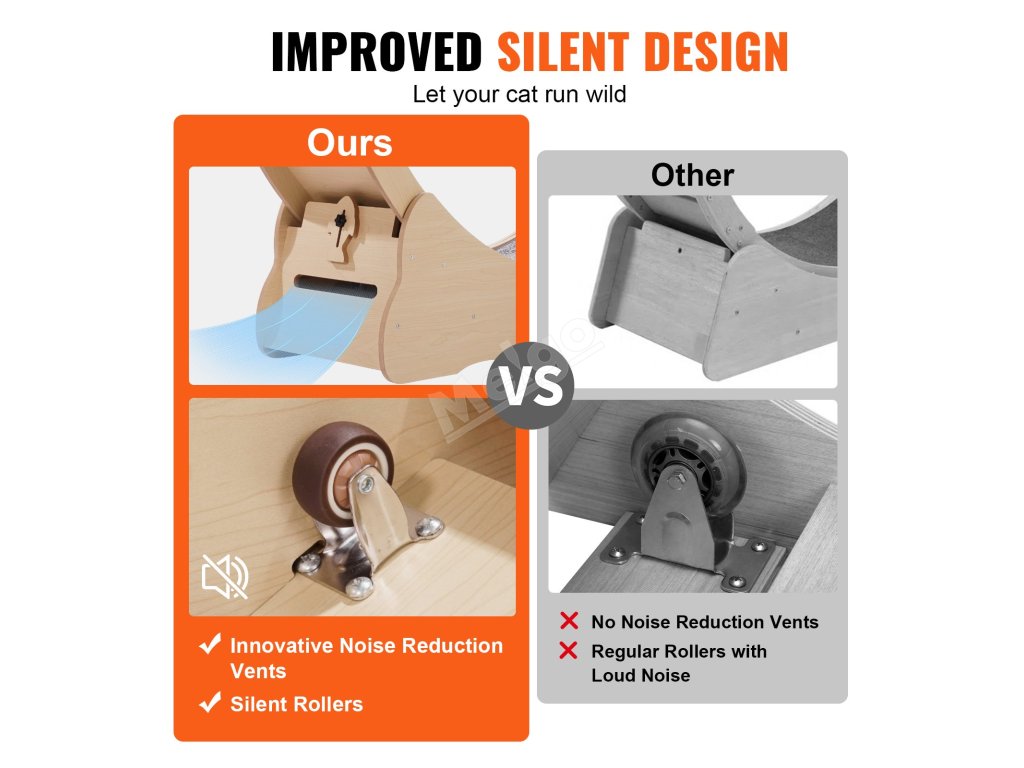 Díky tichému kolečku a otvorům pro redukci hluku dokáže naše kočičí kolečko snížit hluk o 10-20 % a vytvořit tak pro vašeho mazlíčka klidné a příjemné prostředí pro cvičení. To vám umožní harmonické soužití s vaším domácím mazlíčkem a rodinou.