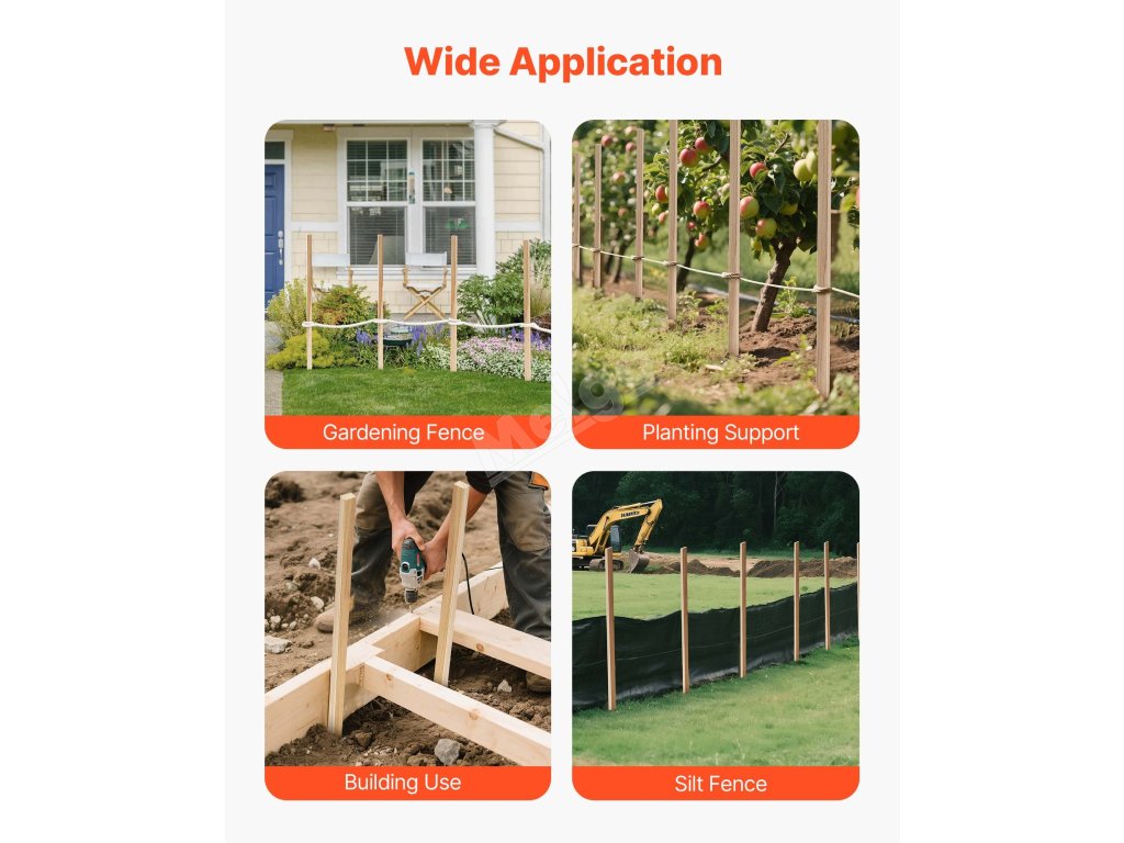 Kromě zahradnictví jsou tyto dřevěné měřicí kůly ideální pro různá použití, například pro instalaci plotů, vyměřování projektů, směrové značky a staveniště.