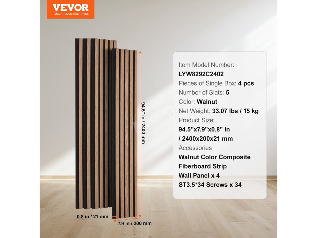 Dřevěné lamelové akustické panely na zeď 7.9×94.5 inch mdf ořech