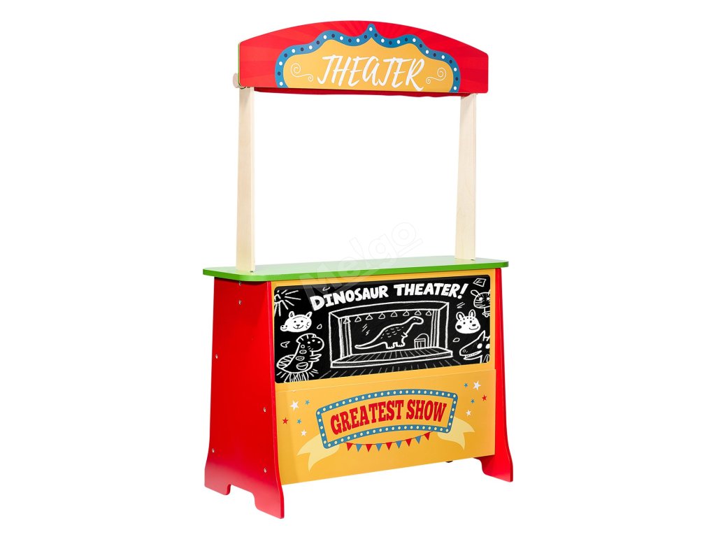 Dřevěné loutkové divadlo 2v1 s oponou, dvoustranný obchod, pokladna