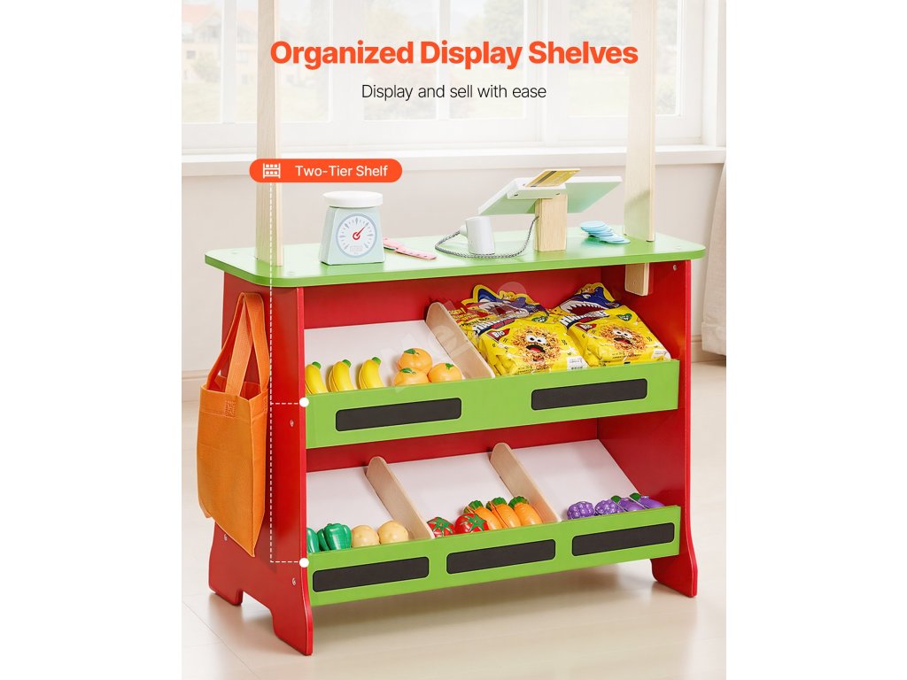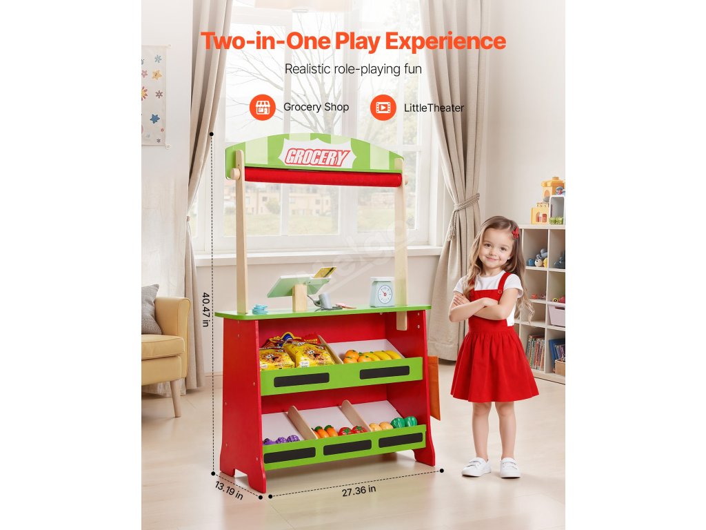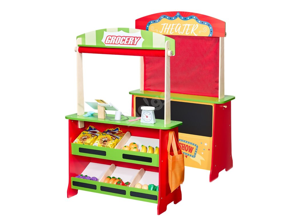 Tato dřevěná dětská herní sestava umožní vašemu dítěti užít si mini trh i malé divadlo! Díky zábavným multifunkčním interakcím, realistickým doplňkům a robustní dřevěné konstrukci si děti při hře užijí nekonečnou zábavu!