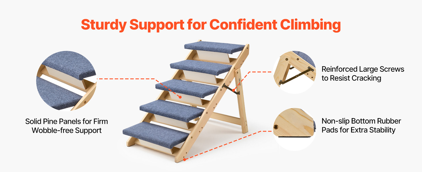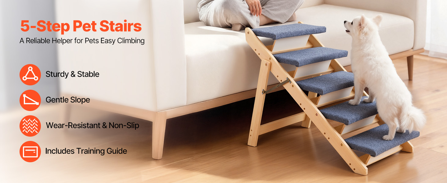 Psí schůdky s 5 stupni pomáhají domácím mazlíčkům různých velikostí, zejména starším, zraněným nebo méně pohyblivým zvířatům, bezpečně se dostat na postele a pohovky. Robustní schůdky poskytují bezpečnou oporu a lze je složit, takže se snadno skladují a přenášejí a šetří místo, když se nepoužívají.